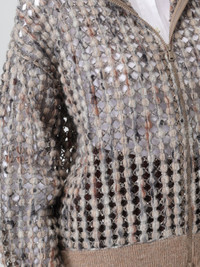 Virgin wool, cashmere and mohair balloon net embroidery cardigan with hood