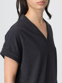 DESCRIPTION - Style: Casual - Neckline: V neckline - Shoulders: Regular - Sleeves: Short - Bottom: With straight hemline - Details: With nickel-free jewels - Materials: Jersey - Pattern: Plain-colored DETAILS AND CARE Composition not available SIZE AND FIT Sizes not available Size and fit Slim fit Designer code: MPT18BD222 C055 Giglio Code: H17740 Designer: Brunello Cucinelli Collection: Brunello Cucinelli Woman Category: Clothing Brunello Cucinelli
