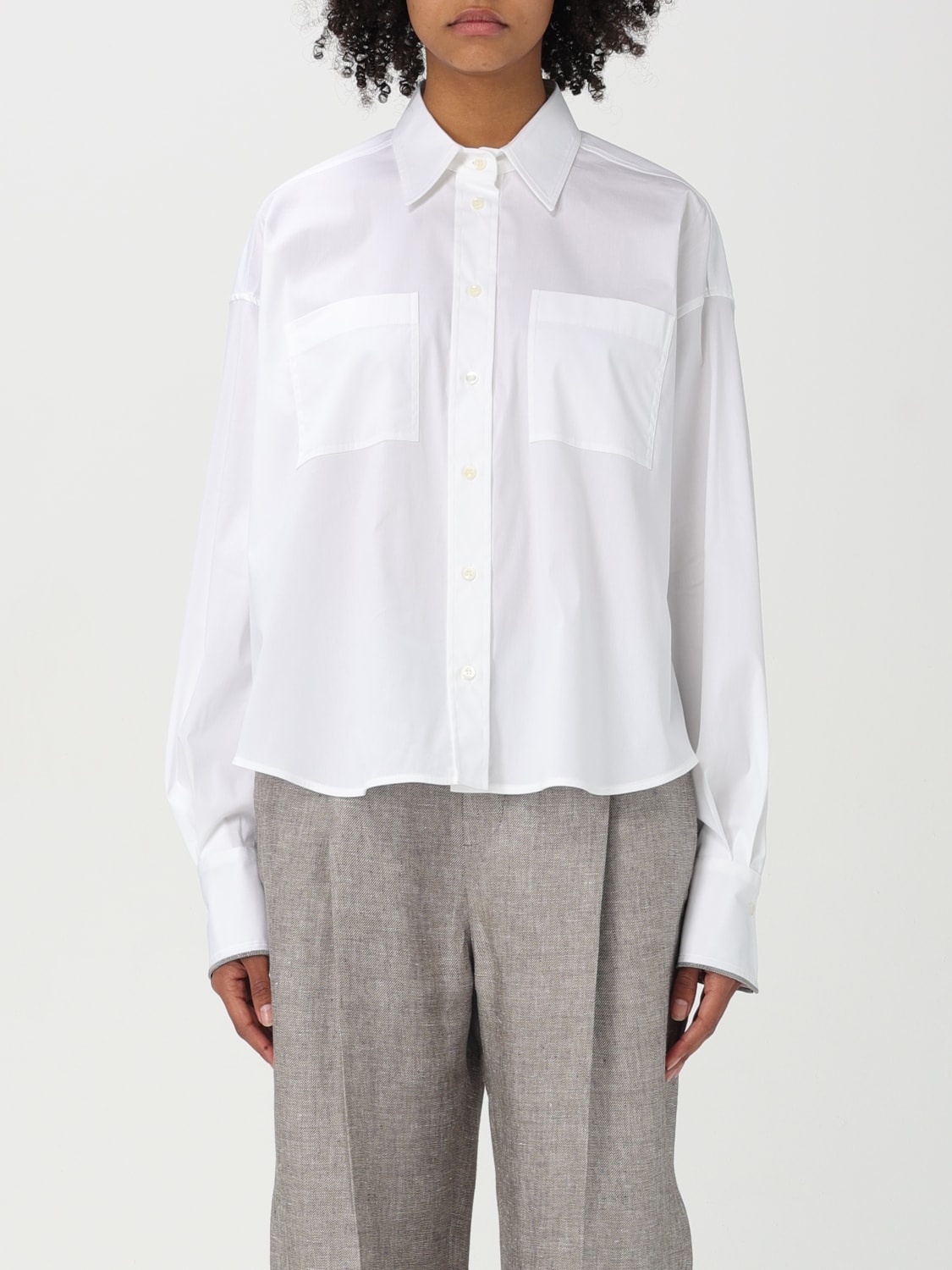 DESCRIPTION - Style: Basic - Details: With nickel-free jewels - Neck: French - Shoulders: Relaxed - Closure: With buttons - Pockets: Patch pocket - Bottom: With straight hemline - Materials: Cotton blend - Pattern: Plain-colored DETAILS AND CARE Composition 72% cotton 23% polyamide 5% elastane SIZE AND FIT Sizes not available Size and fit Relaxed fit Designer code: M0091NL496 C159 Giglio Code: G49821 Designer: Brunello Cucinelli Collection: Brunello Cucinelli Woman Category: Clothing Brunello Cucinelli