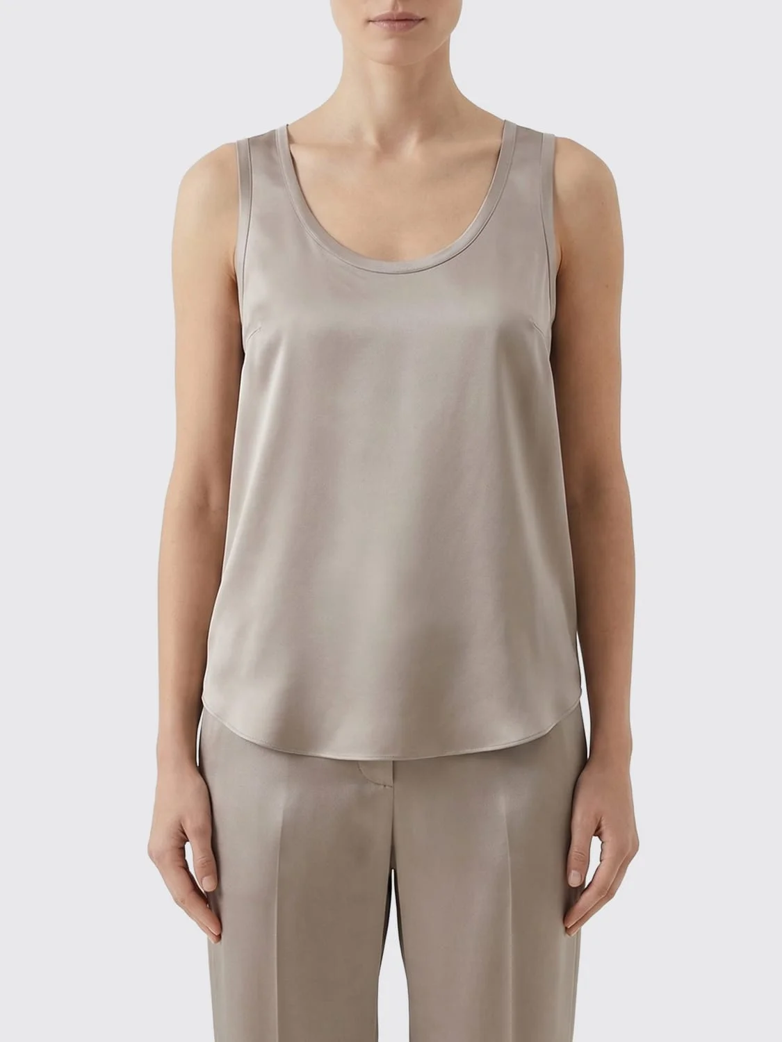 DESCRIPTION - Style: Minimal - Neckline: U neckline - Bottom: With curved hemline - Sleeves: Sleeveless tops - Materials: Silk - Pattern: Plain-colored DETAILS AND CARE Composition not available SIZE AND FIT Sizes not available Size and fit Regular fit Designer code: M0C59E0600 C9125 Giglio Code: H78459 Designer: Brunello Cucinelli Collection: Clothing Brunello Cucinelli Category: Clothing > Top