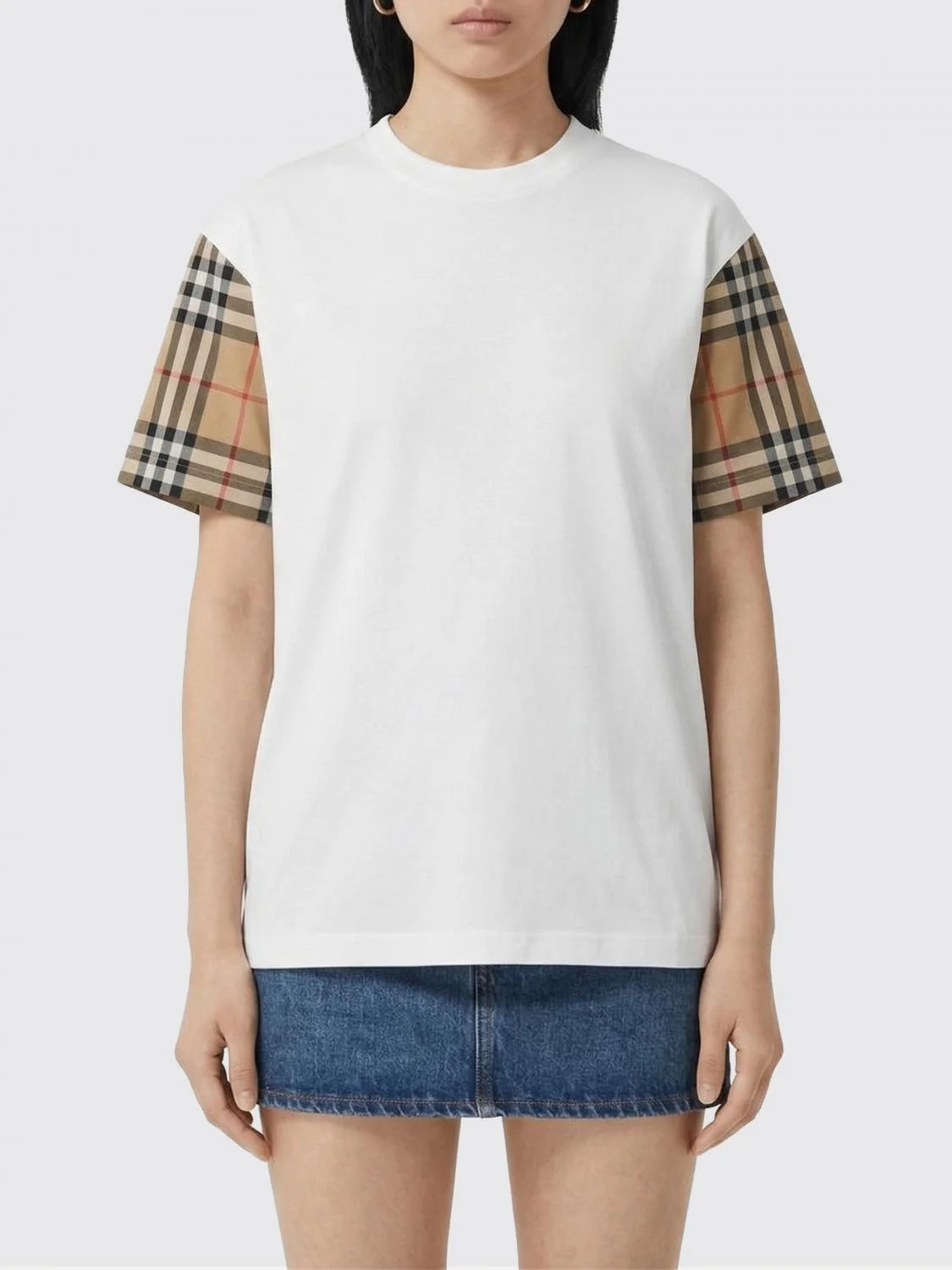 Burberry oversize cotton t-shirt with check sleeves