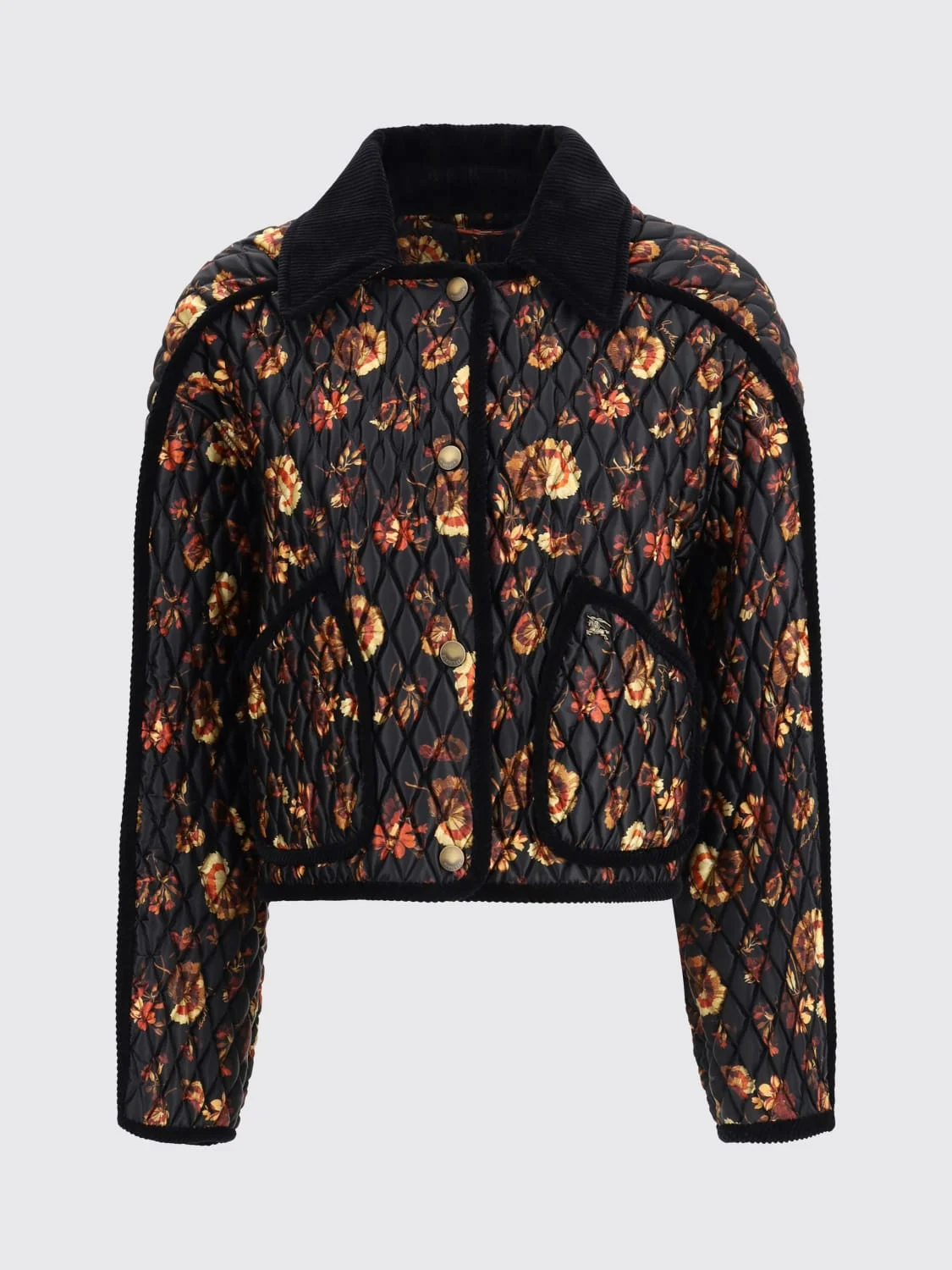 DESCRIPTION - Style: Bohemien, Sporty - Model: Quilted - Shoulders: Regular - Sleeves: Long - Closure: With buttons - Pockets: Patch pocket - Bottom: With straight hemline - Neck: Corduroy - Length: Short jackets - Materials: Nylon - Pattern: Floral DETAILS AND CARE Composition 100% POLYAMIDE (NYLON) SIZE AND FIT Sizes not available Size and fit Regular fit Designer code: 8116976 Giglio Code: H41391 Designer: Burberry Collection: Clothing Burberry Category: Clothing > Jacket