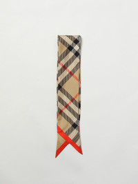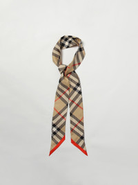 DESCRIPTION • Print: Vintage check • Materials: Silk • Bottom: With asymmetric hemline • Measurements: Width: 8 cm, Length: 180 cm • Wash and Care: Dry clean DETAILS AND CARE Composition Motivo check Dettaglio in contrasto 180 x 8 M SIZE AND FIT Sizes not available