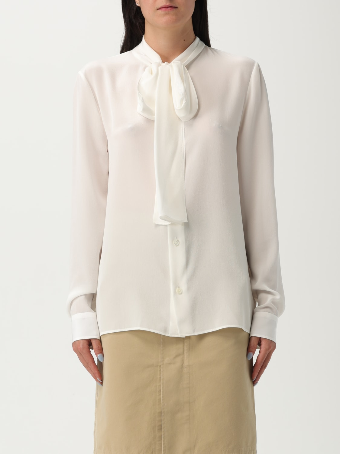 DESCRIPTION - Style: Elegant - Neck: Sash - Shoulders: Regular - Closure: With buttons - Bottom: With straight hemline - Sleeves: Long sleeve shirts - Materials: Silk - Pattern: Plain-colored DETAILS AND CARE Composition 100% Silk SIZE AND FIT Sizes not available Size and fit Regular fit Designer code: 8102668 Giglio Code: G50203 Designer: Burberry Collection: Burberry Woman Category: Clothing Burberry