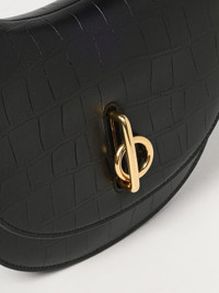 Croc-effect leather shoulder bag Black