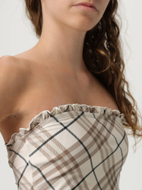 DESCRIPTION - Style: Vintage - Occasion: Beach - Neckline: Straight - Sleeves: Off-the-shoulder - Materials: Polyamide - Pattern: Check DETAILS AND CARE Composition 80% polyamide 20% Elastane SIZE AND FIT Sizes not available Size and fit Slim fit Designer code: 8109148 Giglio Code: G92863 Designer: Burberry Collection: Burberry Woman Category: Clothing Burberry