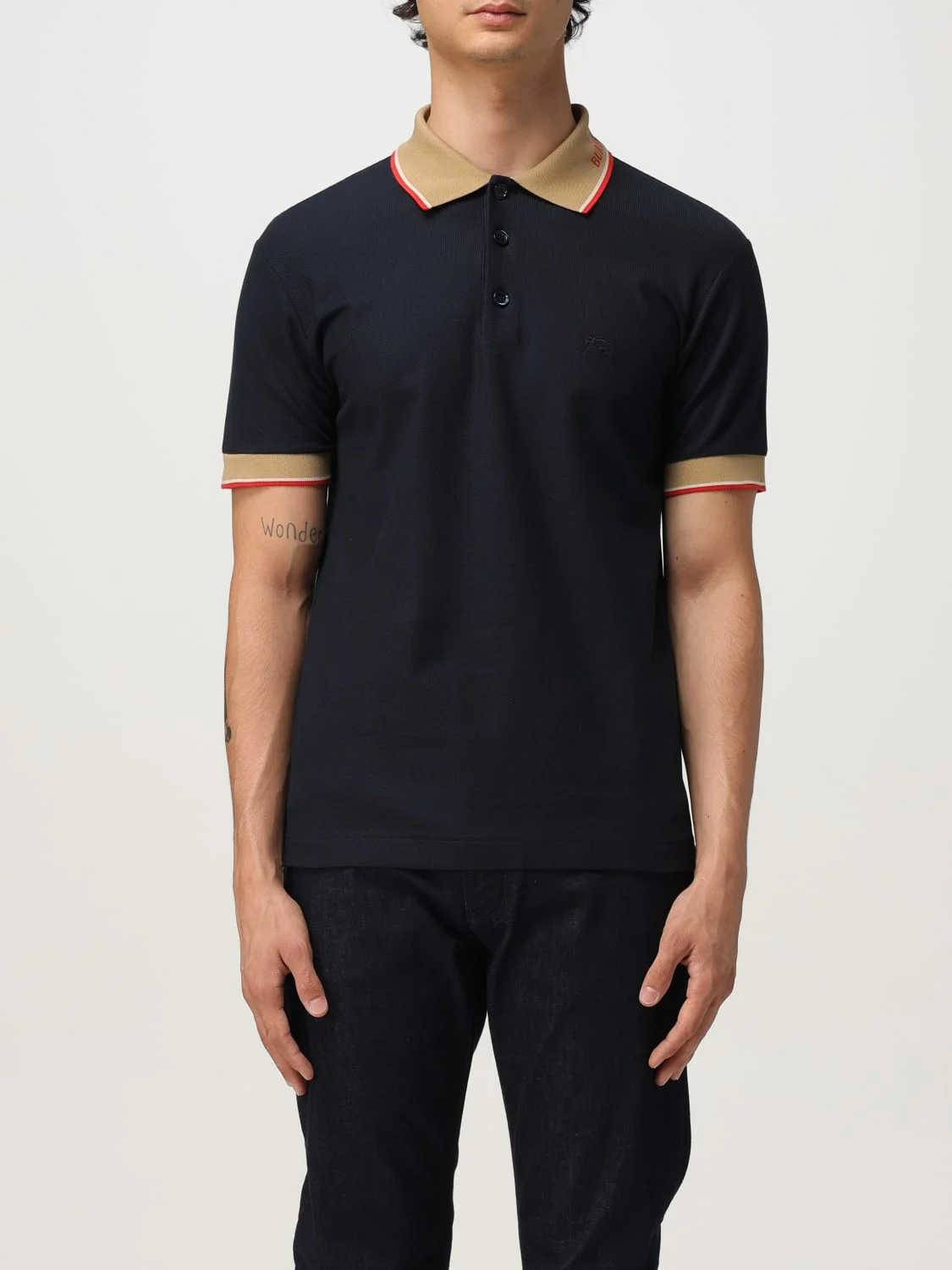 DESCRIPTION - Style: Elegant - Logo: Jacquard - Details: WIth contrasting edges - Shoulders: Regular - Sleeves: Short - Closure: With 3-button placket - Bottom: With straight hemline - Neck: Ribbed - Materials: Cotton - Pattern: Logo DETAILS AND CARE Composition 100% COTTON SIZE AND FIT Sizes not available Size and fit Slim fit Designer code: 8110094 Giglio Code: H18531 Designer: Burberry Collection: Burberry Men Category: Clothing Burberry