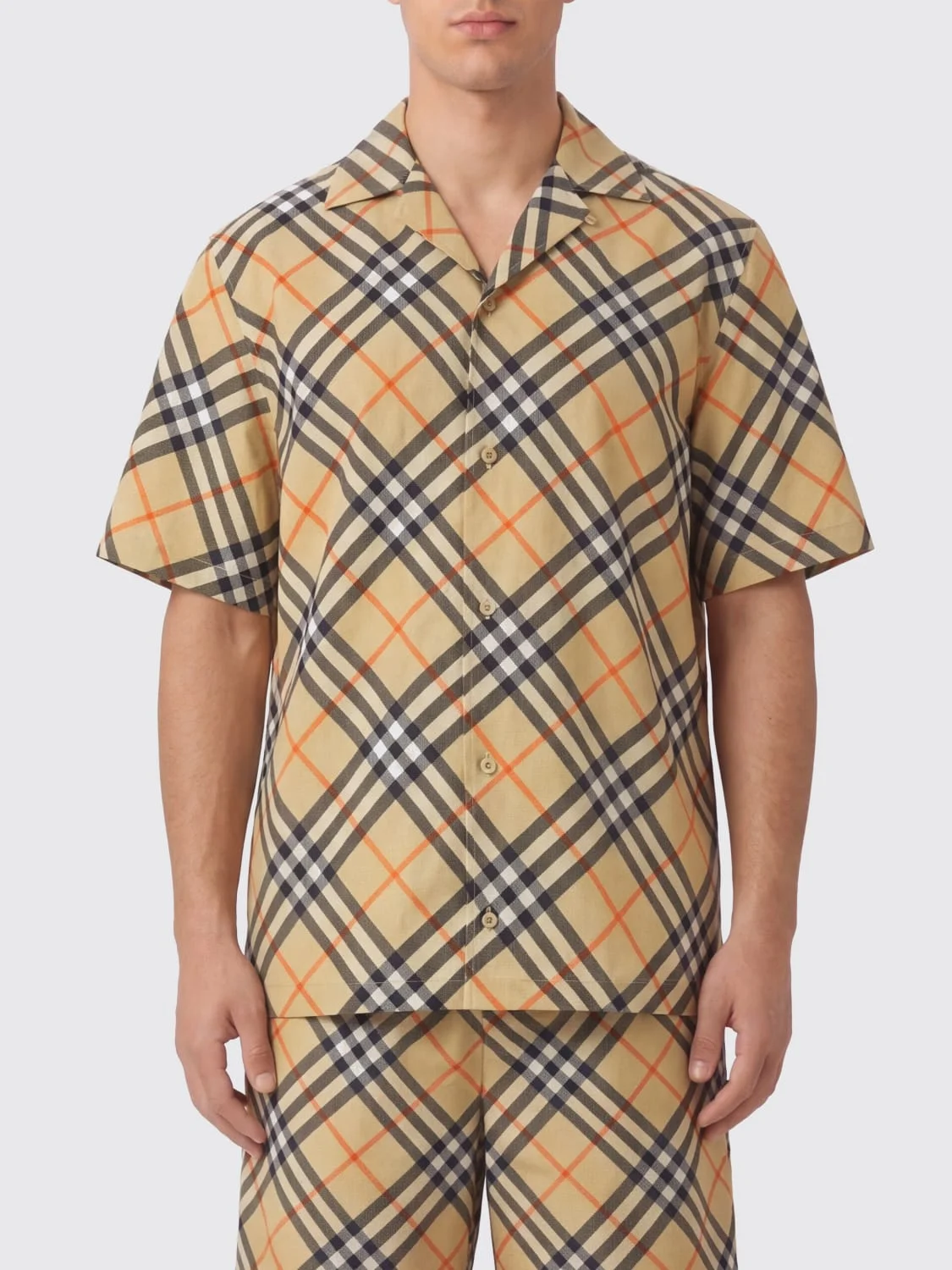 DESCRIPTION • Print: Vintage check • Pattern: Vintage check • Materials: Silk • Model: Bowling • Size and fit: Regular fit • Neck: Bowling • Shoulders: Regular • Sleeves: Short • Closure: With buttons • Bottom: With straight hemline DETAILS AND CARE Composition 100% Silk SIZE AND FIT Sizes not available