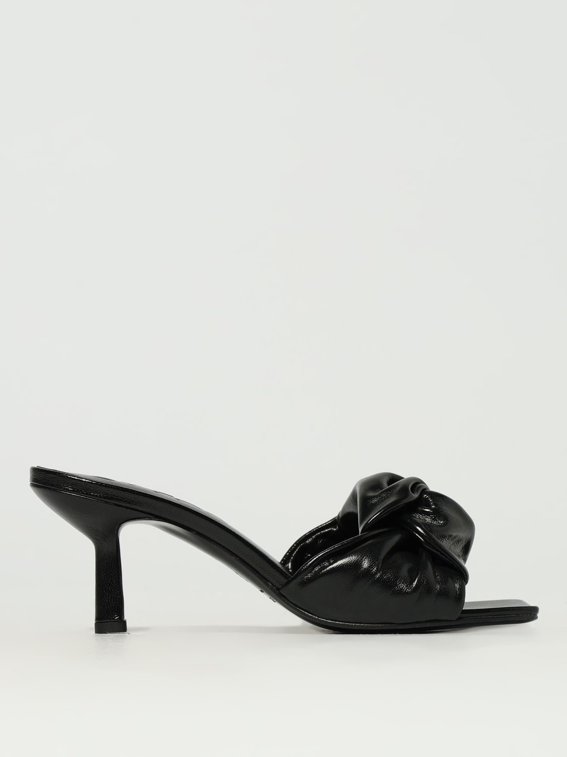 DESCRIPTION - Lining: With logo - Model: Slip on - Toe: Squared - Sole: Leather - Details: With knot - Heel: undefined - Materials: Lambskin - Pattern: Plain-colored DETAILS AND CARE Composition 100 AF SIZE AND FIT Sizes Heel: 6,5 cm Designer code: 21SSLAMBLCRE BK001 Giglio Code: 429561 Designer: By Far Collection: By Far Woman Category: Shoes by Far