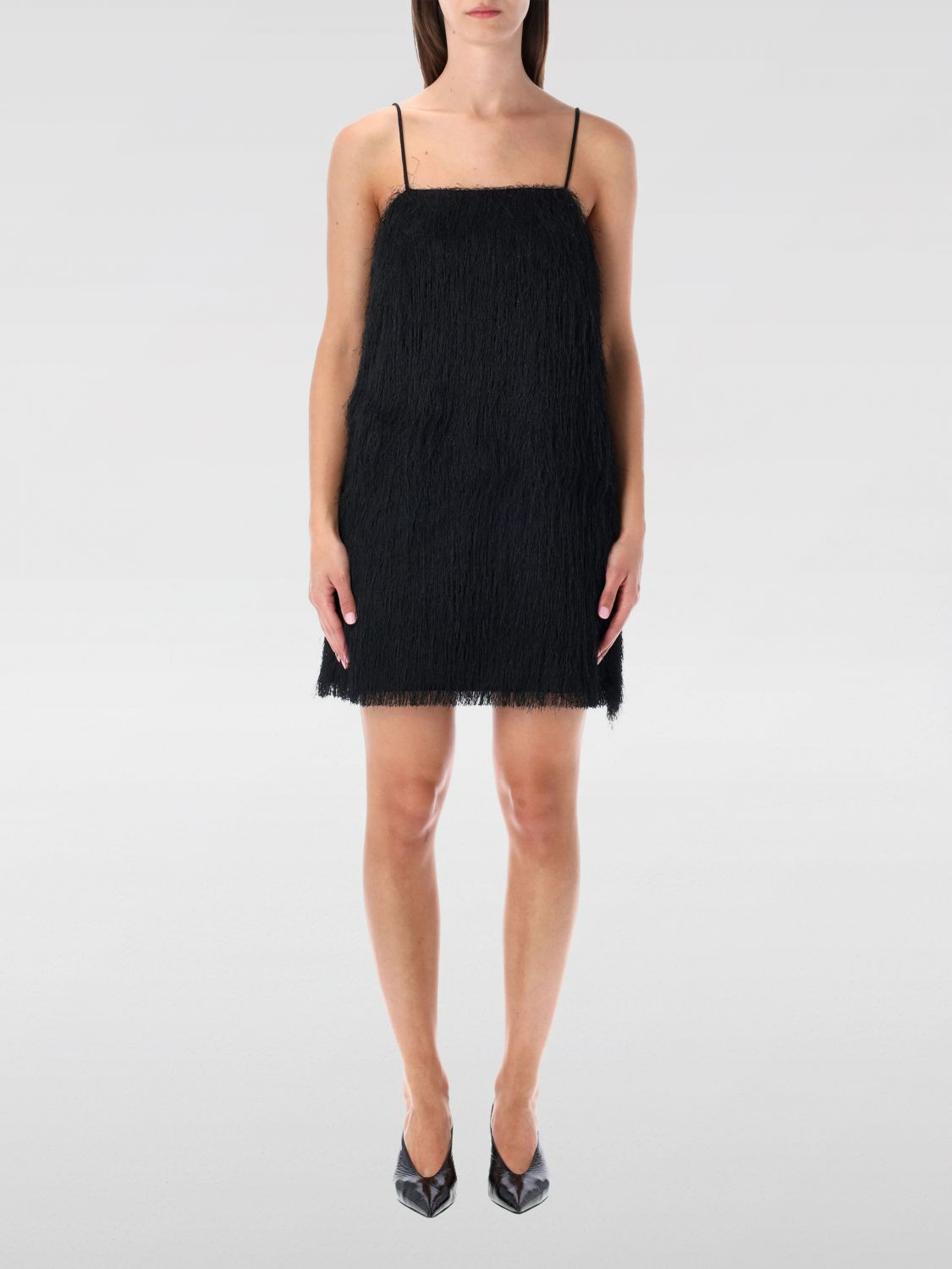 DESCRIPTION - Style: Charleston - Details: With fringes - Neckline: Straight - Shoulders: With thin shoulder straps - Bottom: With straight hemline - Length: Mini dresses - Occasion: Evening and party dresses - Sleeves: Off-the-shoulder dresses - Materials: Polyester - Pattern: Plain-colored DETAILS AND CARE Composition 100% polyester SIZE AND FIT Sizes not available Size and fit Regular fit Designer code: 103615 050 Giglio Code: H41000 Designer: By Malene Birger Collection: By Malene Birger Woman Category: Clothing by Malene Birger