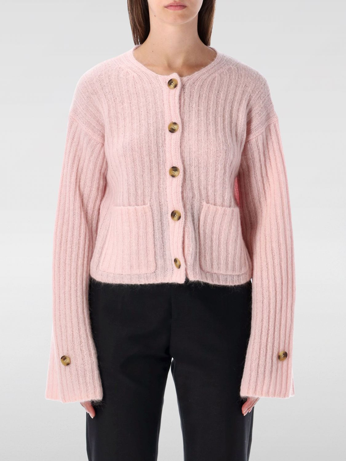 DESCRIPTION - Style: Casual - Model: Crewneck - Neckline: Crewneck - Shoulders: Regular - Sleeves: Long - Closure: With buttons - Pockets: Patch pocket - Bottom: With straight hemline - Materials: Mohair - Pattern: Plain-colored DETAILS AND CARE Composition 49% wool 30% mohair 21% polyamide SIZE AND FIT Sizes not available Size and fit Regular fit Designer code: 103421 5B4 Giglio Code: H42189 Designer: By Malene Birger Collection: By Malene Birger Woman Category: Clothing by Malene Birger