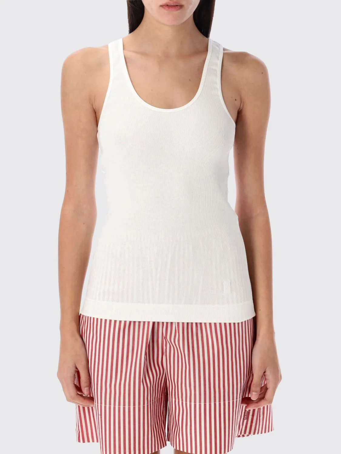 DESCRIPTION - Style: Basic, Sporty - Neckline: U neckline - Bottom: With straight hemline - Model: Stretch - Sleeves: Off-the-shoulder tops - Materials: Organic cotton - Pattern: Plain-colored DETAILS AND CARE Composition 98% cotton organic 2% elastane SIZE AND FIT Sizes not available Size and fit Slim fit Designer code: 101910 03Z Giglio Code: H79663 Designer: By Malene Birger Collection: By Malene Birger Woman Category: Clothing by Malene Birger
