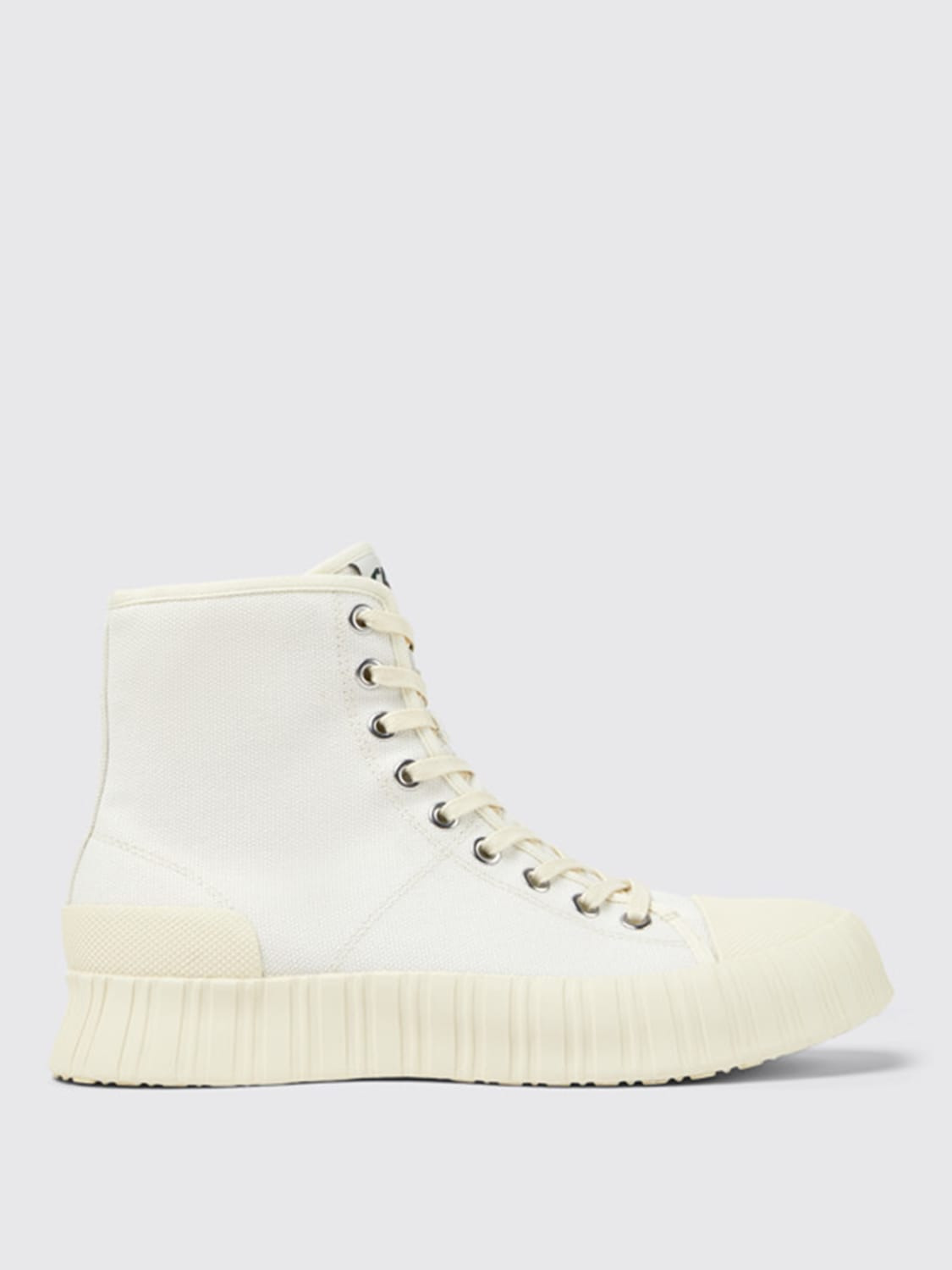 DESCRIPTION - Logo: Contrasting - Model: Lace up - Toe: Rubber - Ankle: Padded - Sole: Rubber - Lining: With OrthoLite® Recycled™ sole - Sustainable: Made with recycled materials - Materials: Recycled cotton - Pattern: Plain-colored DETAILS AND CARE Composition Tessile naturale (cotone riciclato) SIZE AND FIT Sizes not available Designer code: A700002-002 ROZ Giglio Code: D85377 Designer: CamperLab Collection: CamperLab Men Category: Shoes CamperLab