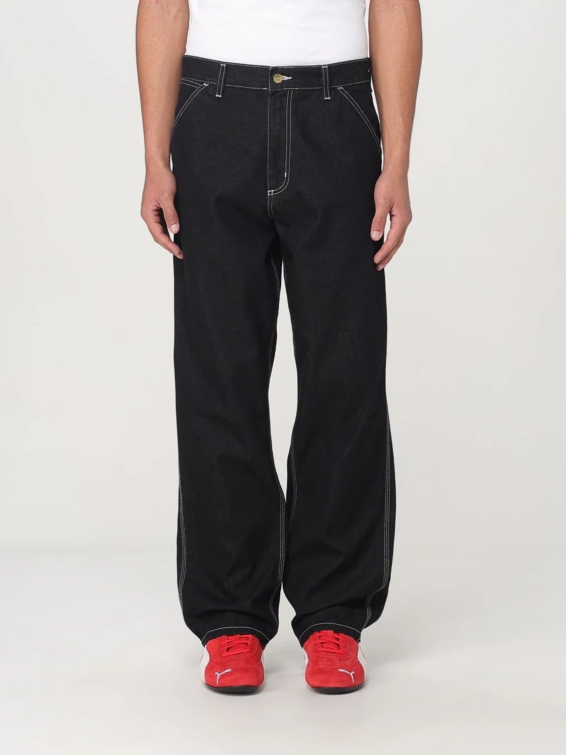 DESCRIPTION - Style: Casual - Pockets: 5-pocket - Waist: Medium - Bottom: With straight hemline - Closure: With button and zip - Materials: Cotton denim - Pattern: Plain-colored DETAILS AND CARE Composition 100% COTTON SIZE AND FIT Sizes not available Size and fit Regular fit Designer code: I034864 8902 Giglio Code: G66617 Designer: Carhartt Wip Collection: Carhartt Wip Men Category: Clothing Carhartt Wip