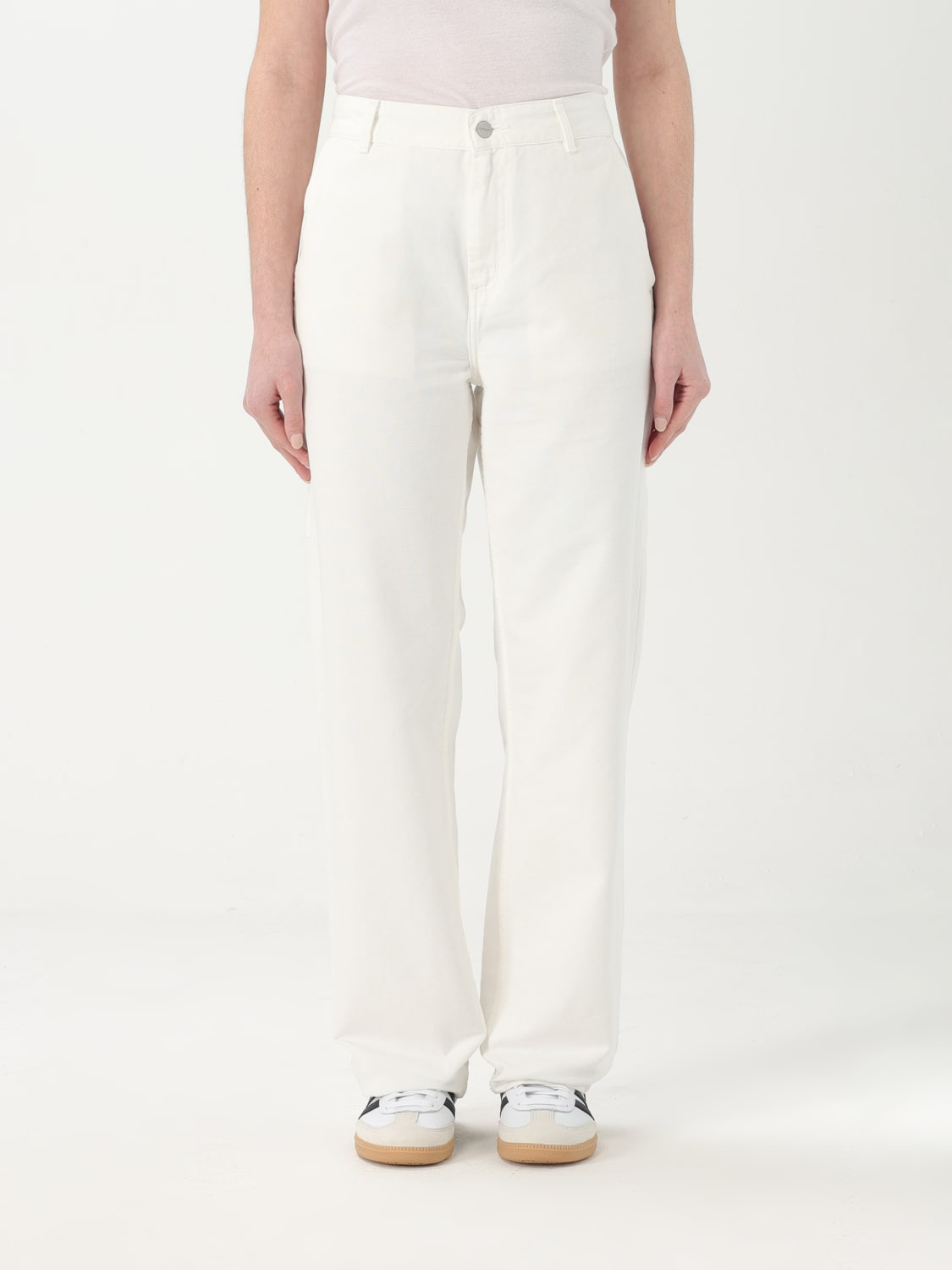 DESCRIPTION - Style: Casual - Pockets: 5-pocket - Waist: undefined - Bottom: With straight hemline - Closure: With button and zip - Materials: Cotton denim - Pattern: Plain-colored DETAILS AND CARE Composition 100% COTTON HUBBARD CANVAS SIZE AND FIT Sizes not available Size and fit Regular fit Designer code: I032966 D602 Giglio Code: G66616 Designer: Carhartt Wip Collection: Carhartt Wip Woman Category: Clothing Carhartt Wip