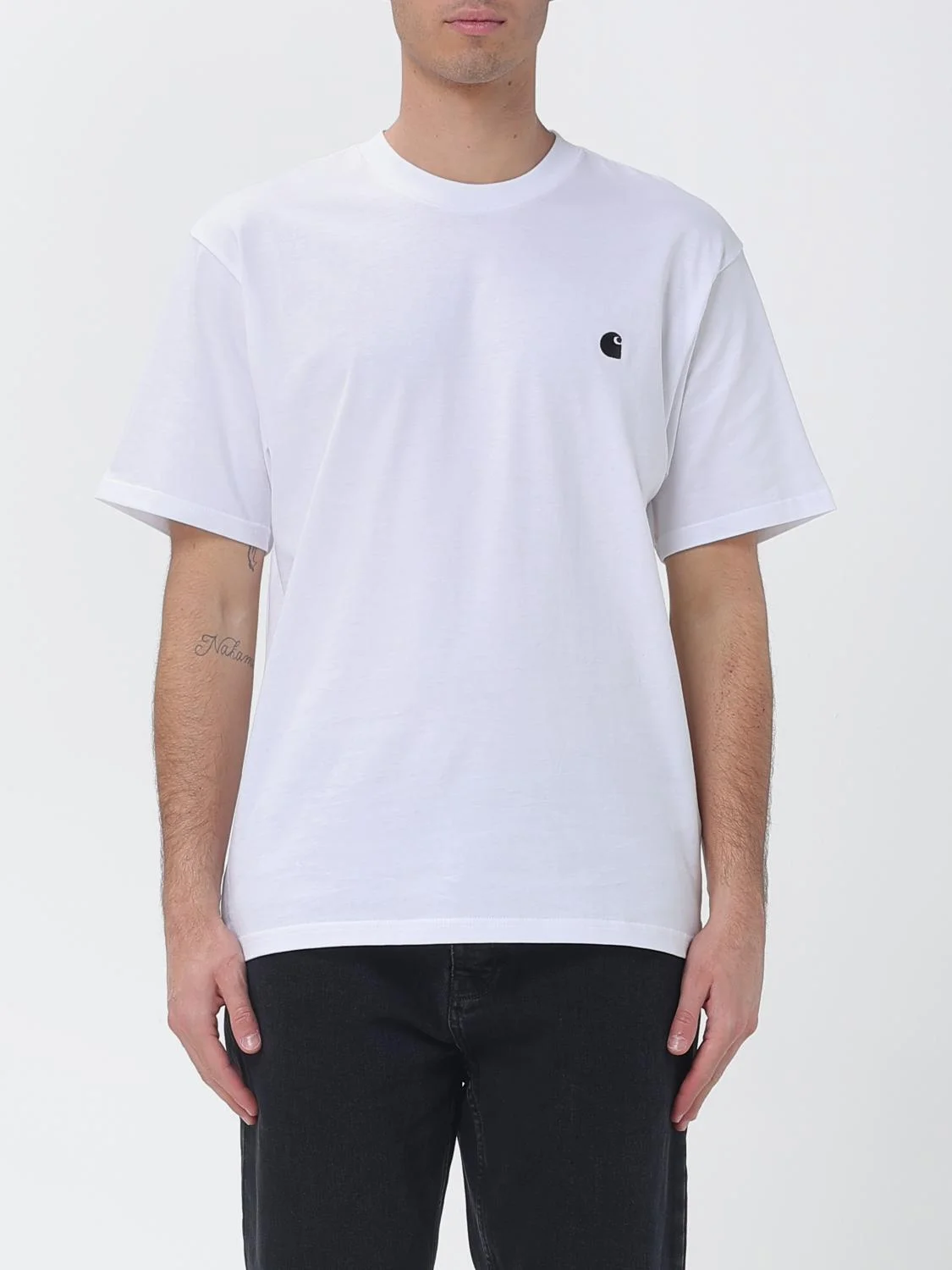 DESCRIPTION - Style: Basic, Sporty - Logo: Contrasting - Model: Crewneck - Neckline: Crewneck - Shoulders: Relaxed - Sleeves: Short - Bottom: With straight hemline - Materials: Organic cotton jersey - Pattern: All-over logo DETAILS AND CARE Composition 100% Organic Cotton Single Jersey, 175 g SIZE AND FIT Sizes not available Size and fit Regular fit Designer code: I033000 00AXX Giglio Code: 421088 Designer: Carhartt Wip Collection: Carhartt Wip Men Category: Clothing Carhartt Wip