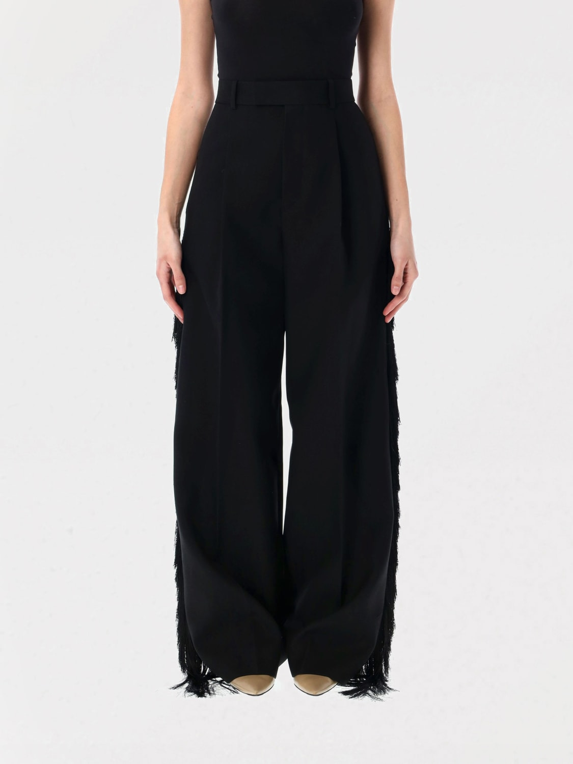 DESCRIPTION - Style: Contemporary - Details: With fringes - Pockets: America - Waist: High waist - Bottom: With straight hemline - Closure: With button and zip - Materials: Wool - Pattern: undefined DETAILS AND CARE Composition 100% wool SIZE AND FIT Sizes not available Size and fit Regular fit Designer code: 6251K2124301 BLACK Giglio Code: G96337 Designer: Carven Collection: Carven Woman Category: Clothing Carven
