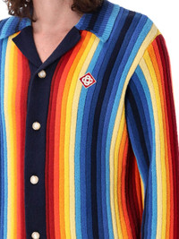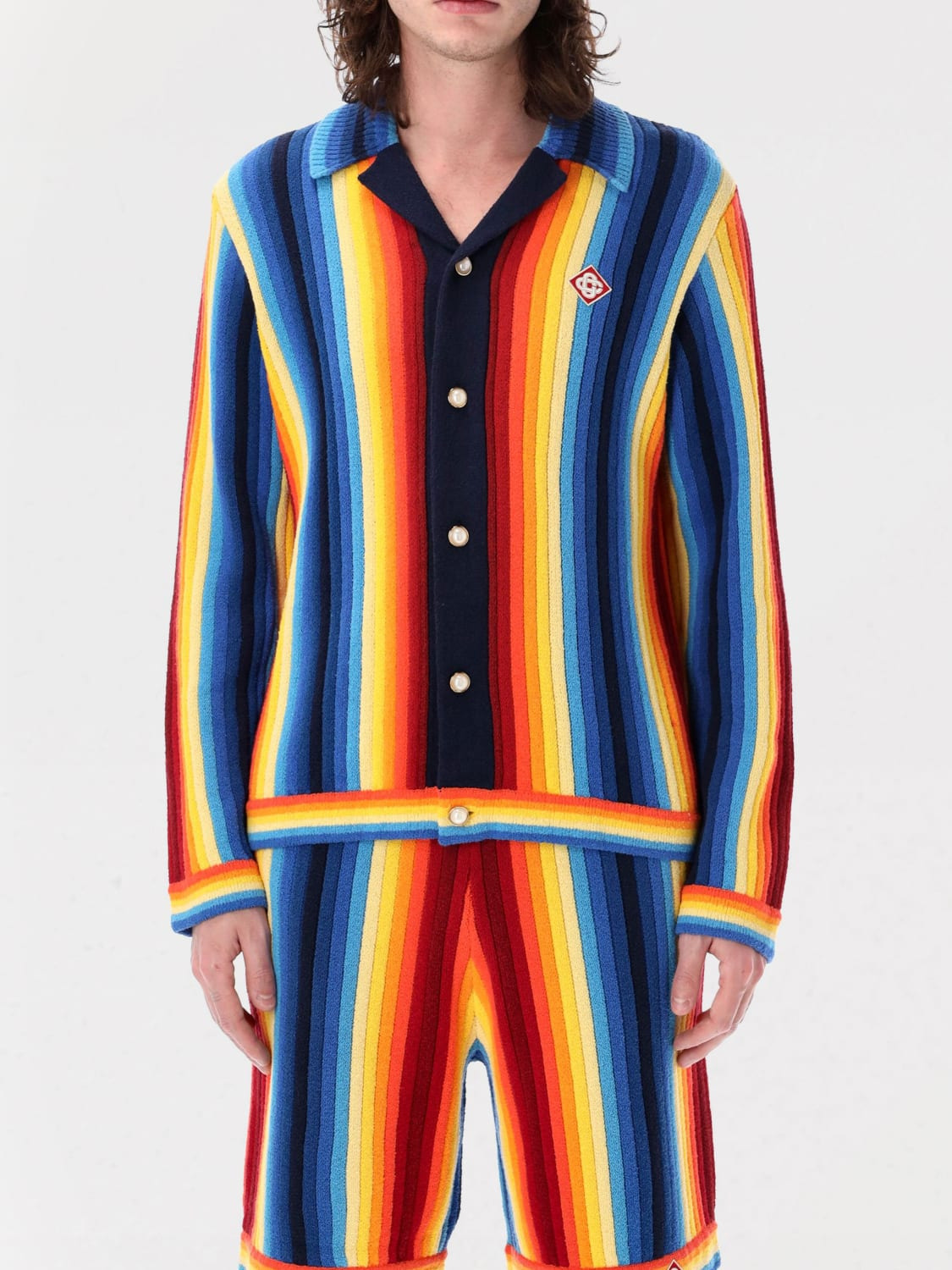 DESCRIPTION - Style: Contemporary - Logo: Contrasting - Neck: Cuban collar - Shoulders: Regular - Sleeves: Long - Closure: With buttons - Bottom: With straight hemline - Model: Knit - Materials: Cotton blend - Pattern: Stripes DETAILS AND CARE Composition 65% cotton 35% polyamide SIZE AND FIT Sizes not available Size and fit Regular fit Designer code: MS25KW91001 01 Giglio Code: G71238 Designer: Casablanca Collection: Casablanca Men Category: Clothing Casablanca
