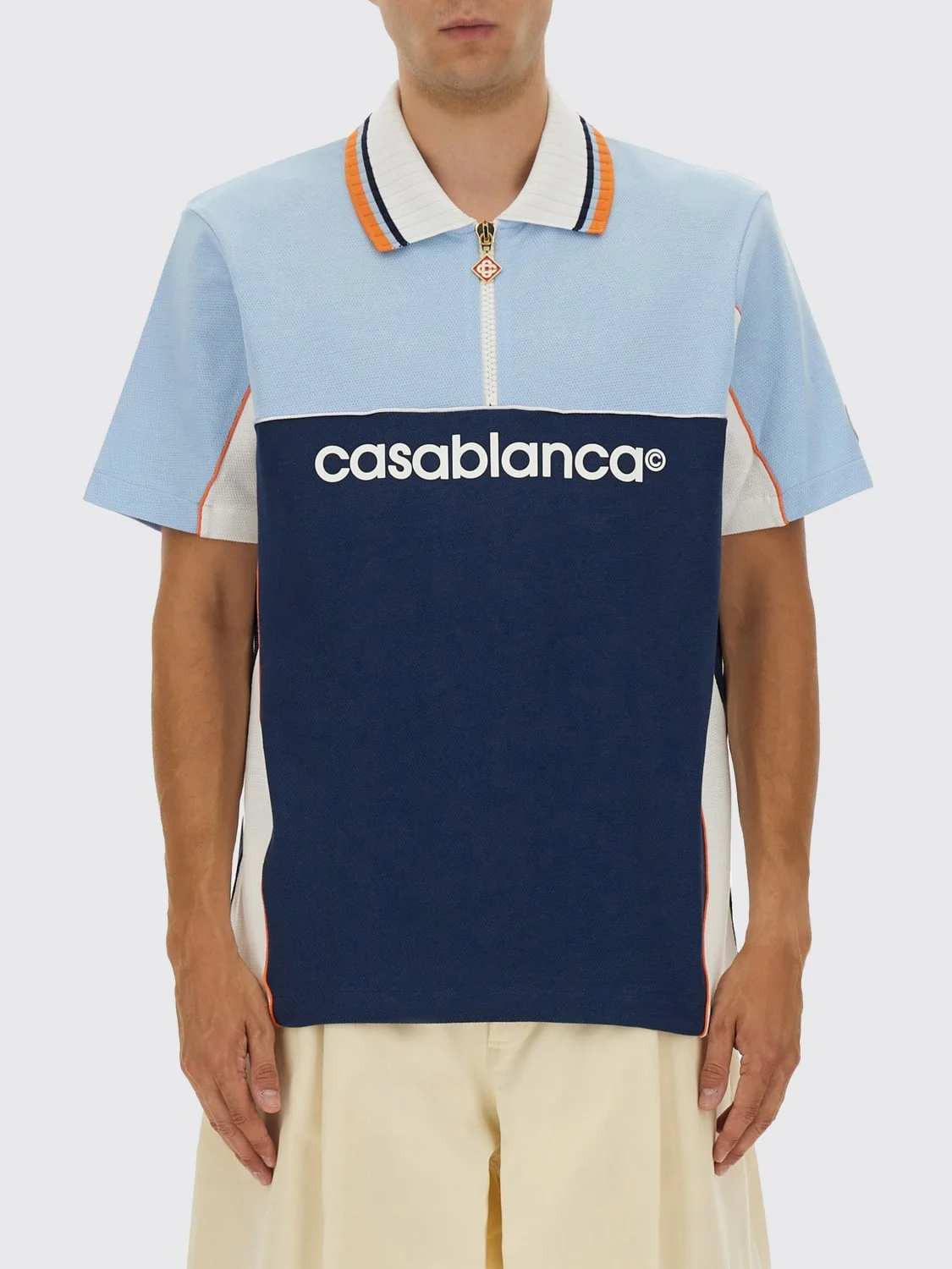 DESCRIPTION - Style: Sporty - Logo: Contrasting - Details: WIth contrasting edges - Shoulders: Regular - Sleeves: Short - Closure: With interrupted zip - Bottom: With straight hemline - Neck: Ribbed - Materials: Cotton - Pattern: Bicolor DETAILS AND CARE Composition ORGANIC COTTON SIZE AND FIT Sizes not available Size and fit Regular fit Designer code: MPF25JTP396 01 Giglio Code: H55043 Designer: Casablanca Collection: Casablanca Men Category: Clothing Casablanca