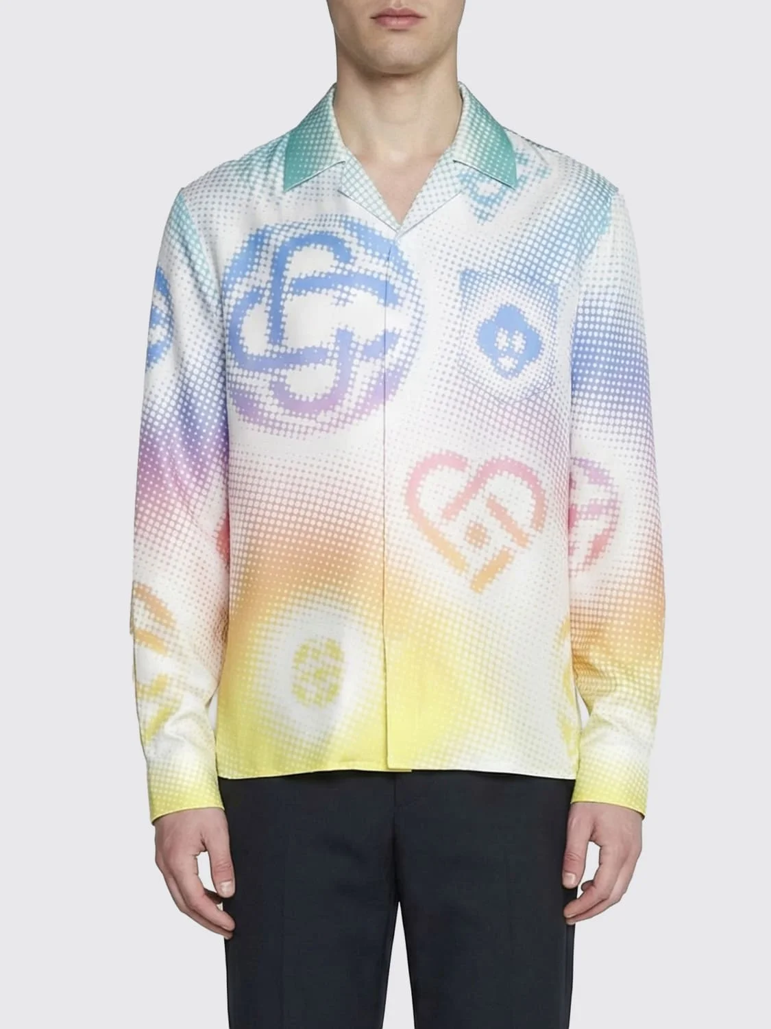 Mutlicolor Halftone Logo Long Sleeve Silk Shirt
