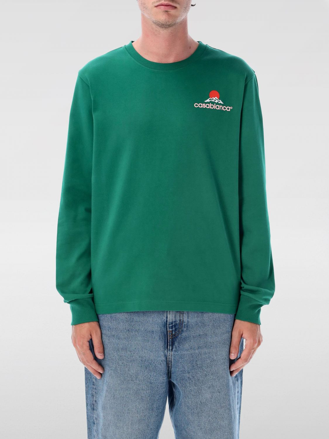 DESCRIPTION - Style: Sporty - Logo: Contrasting - Model: Crewneck - Neckline: Crewneck - Shoulders: Regular - Sleeves: Long - Bottom: With straight hemline - Materials: Cotton - Pattern: Logo DETAILS AND CARE Composition 100% Cotton SIZE AND FIT Sizes not available Size and fit Regular fit Designer code: MPF25JTP151 02 Giglio Code: H33409 Designer: Casablanca Collection: Casablanca Men Category: Clothing Casablanca