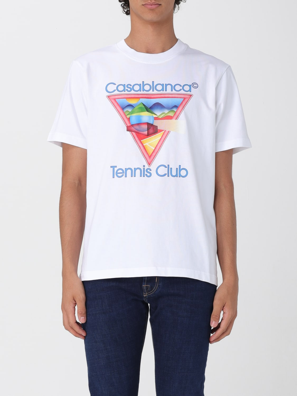DESCRIPTION - Style: Casual - Logo: Contrasting - Neckline: Crewneck - Shoulders: Regular - Sleeves: Short - Bottom: With straight hemline - Materials: Cotton - Pattern: Graphic DETAILS AND CARE Composition 100% ORGANIC COTTON SIZE AND FIT Sizes not available Size and fit Regular fit Designer code: MPF25JTS001 01 Giglio Code: H17152 Designer: Casablanca Collection: Casablanca Men Category: Clothing Casablanca