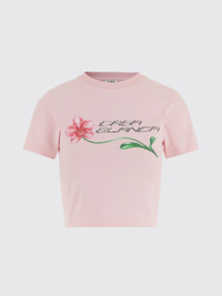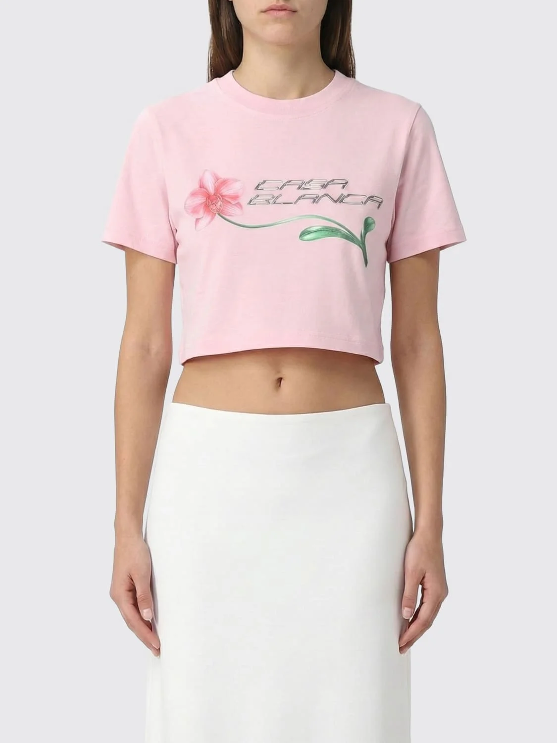 DESCRIPTION - Style: Casual, Romantic - Logo: Print - Model: Crewneck - Neckline: Crewneck - Shoulders: Regular - Sleeves: Short - Bottom: With straight hemline - Materials: Cotton - Pattern: Floral, Logo DETAILS AND CARE Composition MAIN: 95% ORGANIC COTTON, 5% ELASTANE CONTRAS SIZE AND FIT Sizes not available Size and fit Cropped fita Designer code: WSP26JTS009 01 Giglio Code: H85562 Designer: Casablanca Collection: Casablanca Woman Category: Clothing Casablanca