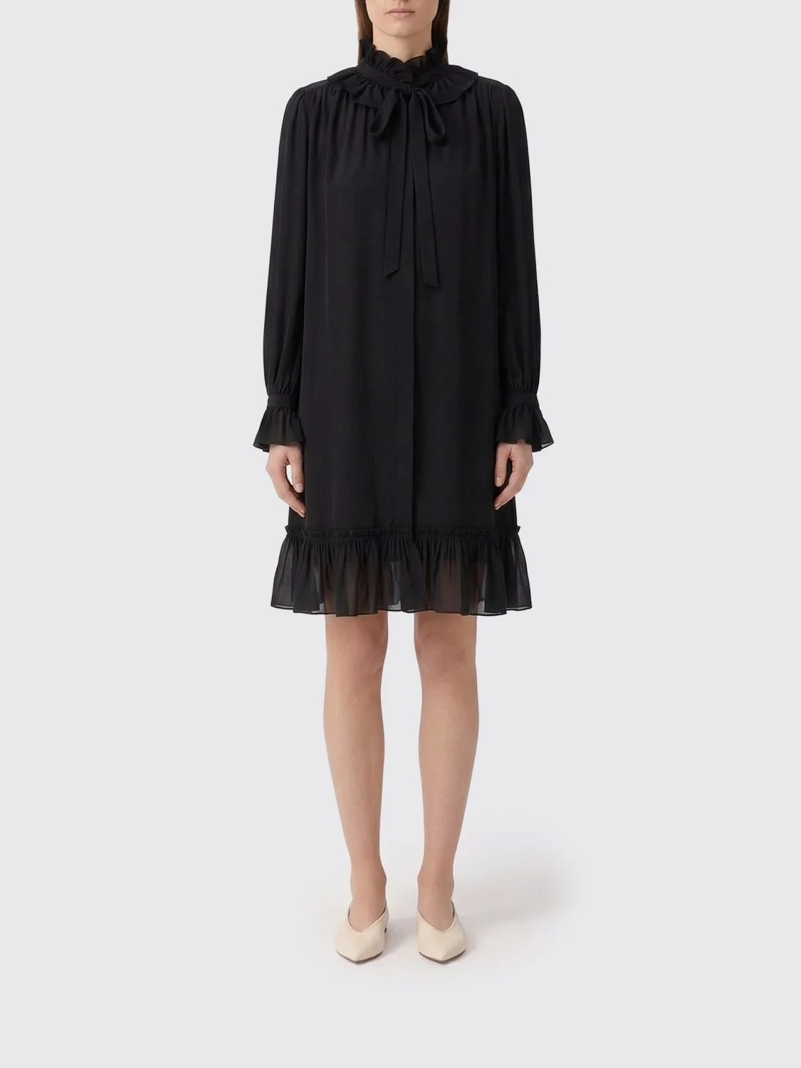 LONG-SLEEVE MINI DRESS IN CRÊPE DE CHINE