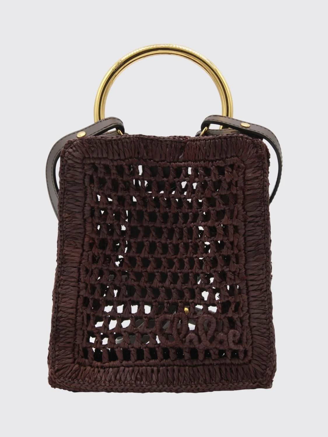 DESCRIPTION - Style: Country - Logo: Embroidered, Lettering, Tone-on-tone - Lining: Unlined - Model: Hand, Pierced - Shape: Rectangular - Handle: Metallic, Rigid - Shoulder strap: Adjustable and removable, Leather - Occasion: Morning - Materials: Smooth calfskin - Pattern: Plain-colored DETAILS AND CARE Composition _100% RAFFIA; SECONDARY MATERIAL: 100% CALF L SIZE AND FIT Sizes Width : 17,5 cm Height: 19 cm Depth: 5 cm Designer code: CH25AP567P08 24X Giglio Code: H33948 Designer: Chloe Collection: Chloe Woman Category: Bags Chloe