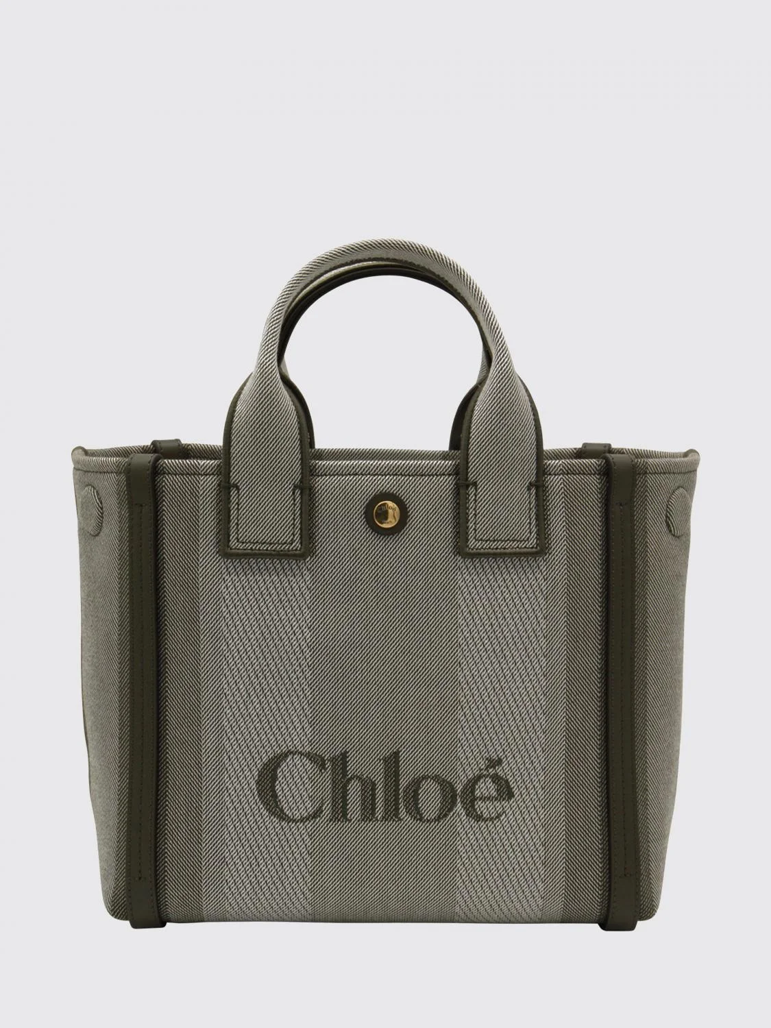 DESCRIPTION - Logo: Jacquard - Lining: With patch pockets - Model: Hand - Closure: Magnetic - Shape: Rectangular - Handle: Double - Shoulder strap: Adjustable - Materials: Smooth calfskin - Pattern: Logo DETAILS AND CARE Composition MAIN MATERIAL: 91% COTTON ; 6% POLYESTER ; 3% SIZE AND FIT Sizes Width : 27 cm Height: 23,5 cm Depth: 12 cm Designer code: CHC25SS911O65 3E5 Giglio Code: H13507 Designer: Chloe Collection: Chloe Woman Category: Bags Chloe