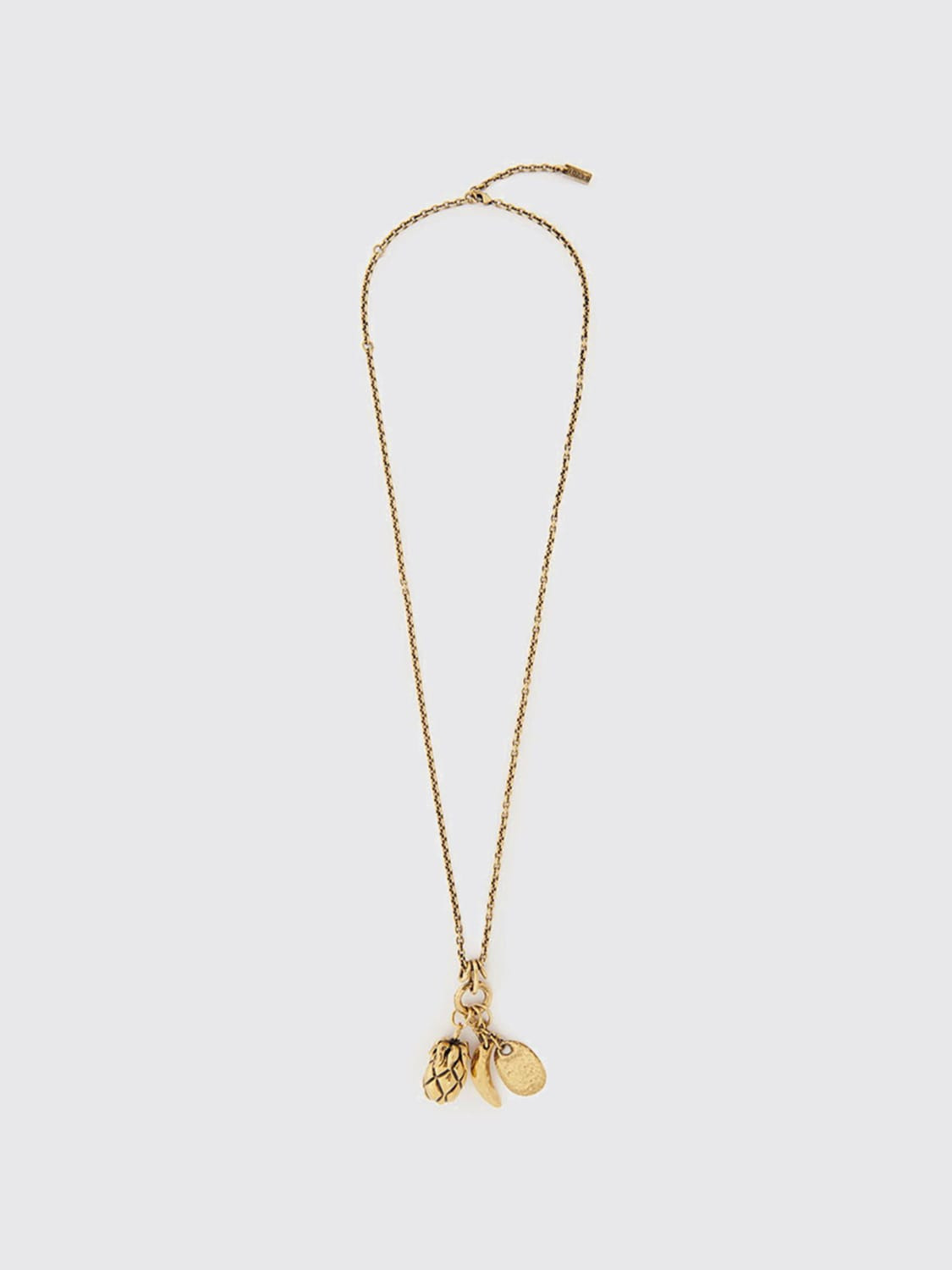 DESCRIPTION - Logo: Engraved - Details: With sliding pendant - Model: Adjustable - Closure: With snap-hook - Materials: Brass - Pattern: Fruit DETAILS AND CARE Composition 100% BRASS SIZE AND FIT Sizes not available Designer code: CHC24WFO79CB7 9DC Giglio Code: H23572 Designer: Chloe Collection: Chloe Woman Category: Accessories Chloe