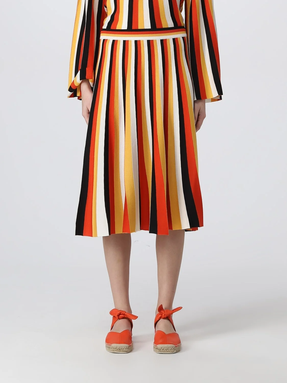 DESCRIPTION - Style: Pop - Model: Pleated - Waist: High , Stretch - Bottom: With straight hemline - Length: Midi skirts - Pattern: Stripes DETAILS AND CARE Composition not available SIZE AND FIT Sizes not available Size and fit Regular fit Designer code: C23SMJ10550 8ZA Giglio Code: E11634 Designer: Chloe Collection: Chloe Woman Category: Clothing Chloe