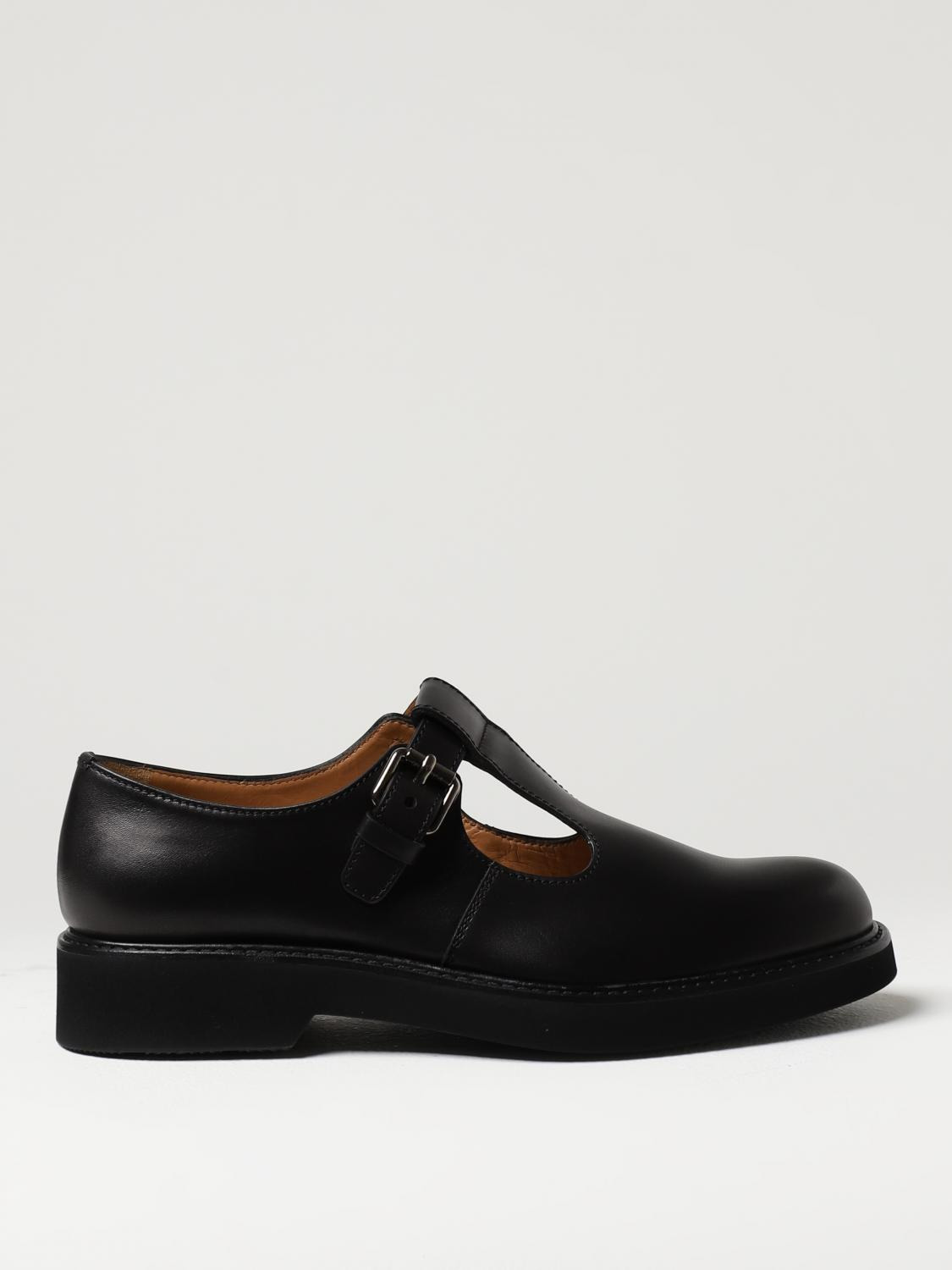 DESCRIPTION - Lining: Leather, With logo - Model: Mary Jane - Toe: Round - Sole: Custom Grade, Rubber - Heel: Low heel - Closure: With adjustable strap - Occasion: Morning - Materials: Smooth calfskin - Pattern: Plain-colored DETAILS AND CARE Composition 100% Pelle di Vitello SIZE AND FIT Sizes Heel: 3,5 cm Designer code: DX01019AGX F0AAB Giglio Code: E68706 Designer: Church's Collection: Church's Woman Category: Shoes Church's