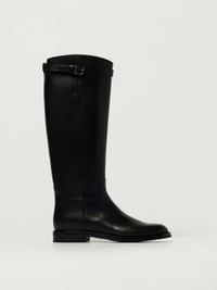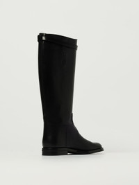 DESCRIPTION - Lining: With logo - Model: Slip on - Toe: Round - Shaft: Knee-high - Sole: Rubber - Heel: Low heel - Details: With adjustable bands - Materials: Smooth calfskin - Pattern: Plain-colored DETAILS AND CARE Composition 100% CALFSKIN SIZE AND FIT Sizes not available Designer code: DW00019YS F0AAB Giglio Code: H24823 Designer: Church's Collection: Church's Woman Category: Shoes Church's