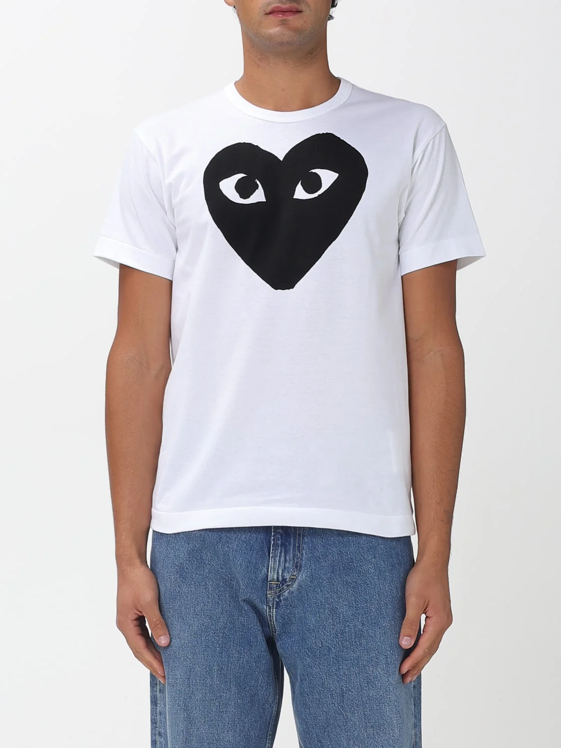 DESCRIPTION - Style: Sporty - Logo: Contrasting - Model: Crewneck - Neckline: Crewneck - Shoulders: Regular - Sleeves: Short - Bottom: With straight hemline - Materials: Cotton - Pattern: Logo DETAILS AND CARE Composition not available SIZE AND FIT Sizes not available Size and fit Slim fit Designer code: AXT070051 1 Giglio Code: H64129 Designer: Comme Des Garcons Play Collection: Comme Des Garcons Play Men Category: Clothing Comme Des Garcons Play