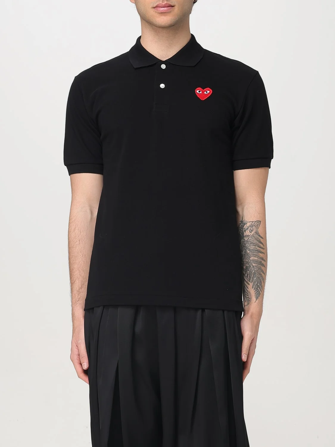 DESCRIPTION - Style: Casual - Logo: Embroidered - Neck: Classic - Shoulders: Regular - Sleeves: Short - Closure: With 2-button placket - Bottom: With straight hemline - Materials: Cotton - Pattern: Plain-colored DETAILS AND CARE Composition Cotone 100% SIZE AND FIT Sizes not available Size and fit Regular fit Designer code: AXT006051 1 Giglio Code: G69027 Designer: Comme Des Garcons Play Collection: Comme Des Garcons Play Men Category: Clothing Comme Des Garcons Play