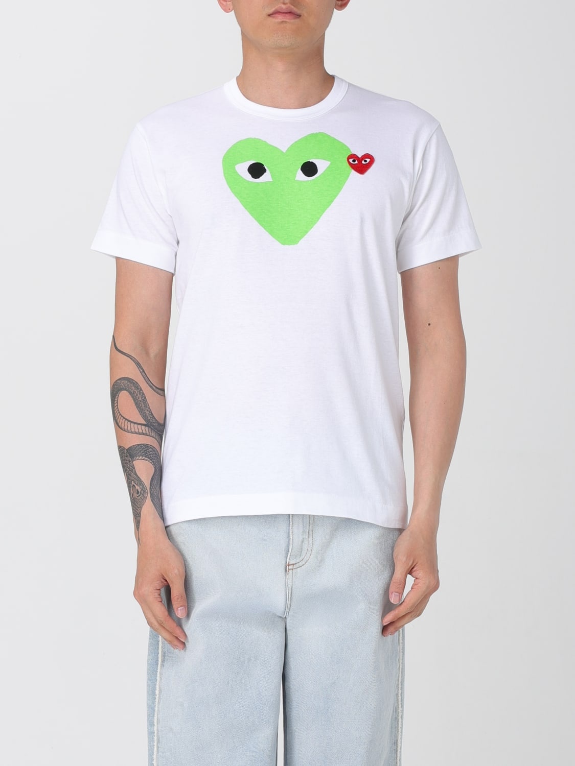 DESCRIPTION - Style: Basic, Casual - Logo: Contrasting - Neckline: Crewneck - Shoulders: Regular - Sleeves: Short - Bottom: With straight hemline - Materials: Cotton - Pattern: Plain-colored, All-over logo DETAILS AND CARE Composition COTONE 100% SIZE AND FIT Sizes not available Size and fit Regular fit Designer code: AXT106051 3 Giglio Code: G69028 Designer: Comme Des Garcons Play Collection: Comme Des Garcons Play Men Category: Clothing Comme Des Garcons Play