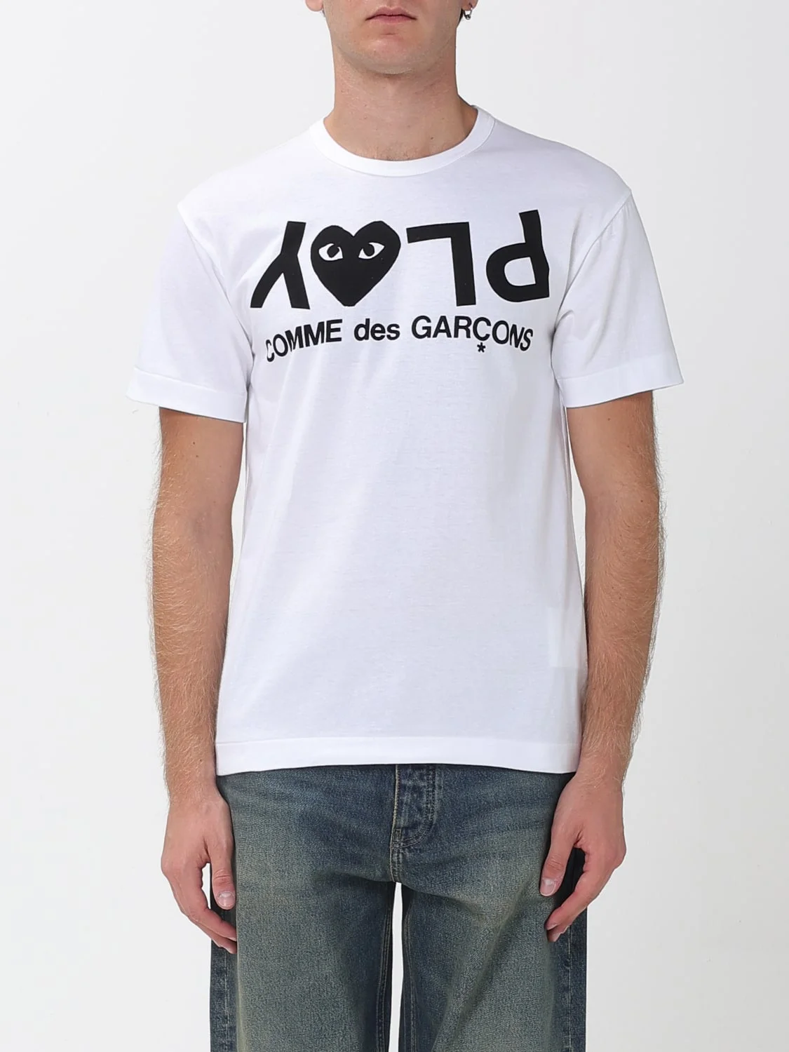 DESCRIPTION - Style: Sporty - Logo: Contrasting - Model: Crewneck - Neckline: Crewneck - Shoulders: Regular - Sleeves: Short - Bottom: With straight hemline - Materials: Cotton - Pattern: Logo DETAILS AND CARE Composition not available SIZE AND FIT Sizes not available Size and fit Slim fit Designer code: AXT068051 1 Giglio Code: H64133 Designer: Comme Des Garcons Play Collection: Comme Des Garcons Play Men Category: Clothing Comme Des Garcons Play
