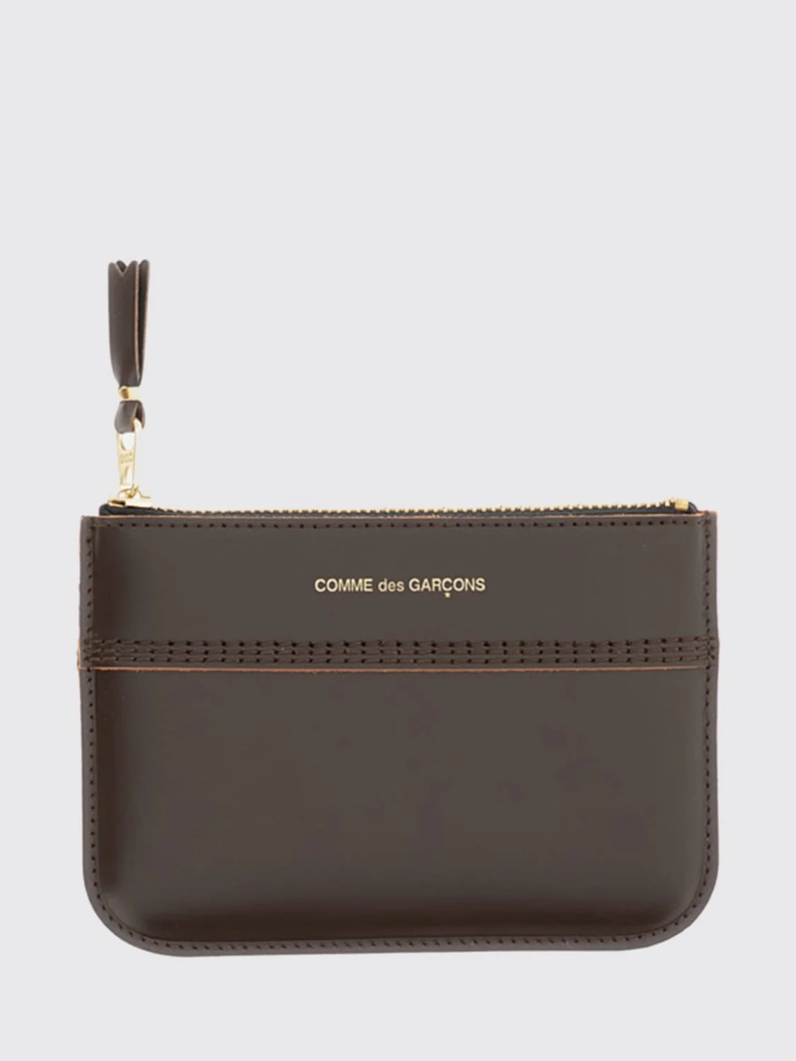DESCRIPTION - Style: Contemporary - Logo: Laminated, Lettering - Details: With bow - Lining: Leather - Model: Flat - Closure: With zip - Shape: Rectangular - Materials: Leather - Pattern: Plain-colored DETAILS AND CARE Composition 100% LE SIZE AND FIT Sizes not available Designer code: SA8100TS BROWN Giglio Code: H69404 Designer: Comme Des Garcons Play Collection: Comme Des Garcons Play Men Category: Accessories Comme Des Garcons Play