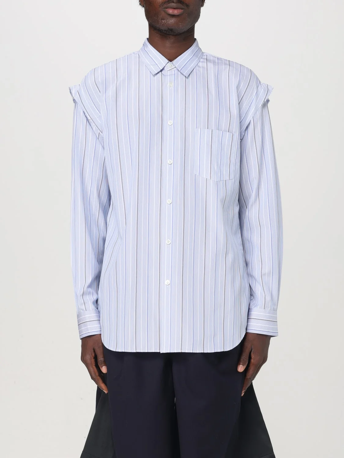 DESCRIPTION - Neck: French - Shoulders: Regular - Sleeves: Long - Closure: With buttons - Bottom: With straight hemline - Materials: Cotton - Pattern: Stripes DETAILS AND CARE Composition 100% Cotton SIZE AND FIT Sizes not available Size and fit Regular fit Designer code: FNB029 1 Giglio Code: G06803 Designer: Comme Des Garcons Shirt Collection: Comme Des Garcons Shirt Men Category: Clothing Comme Des Garcons Shirt