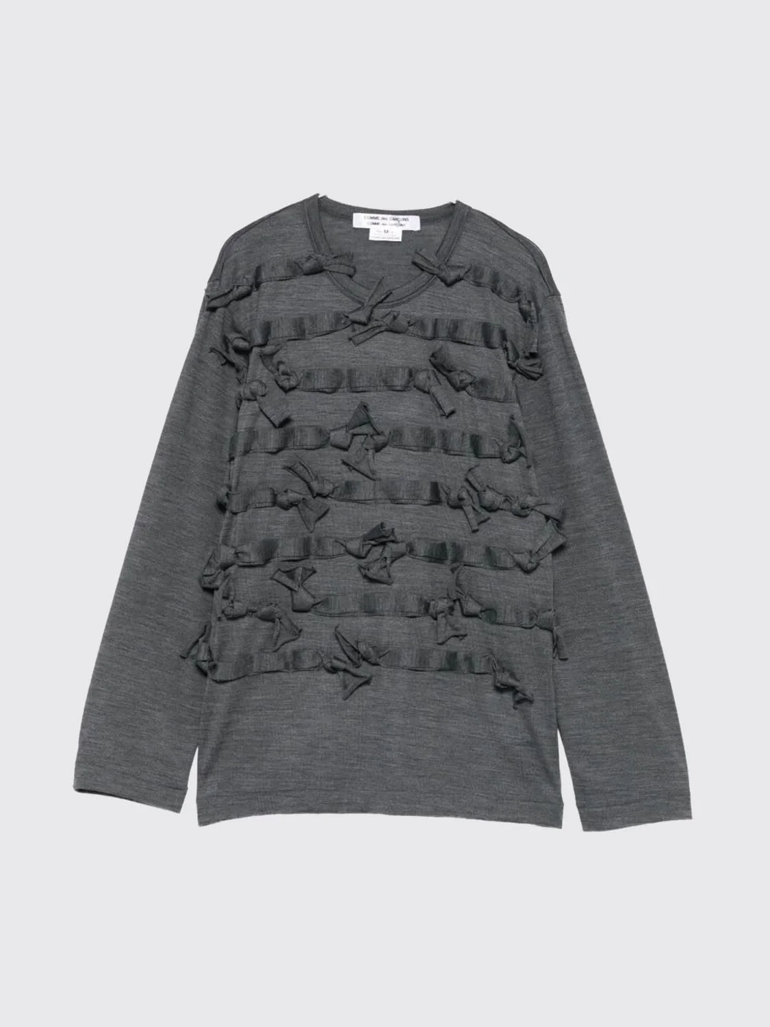 CREW NECK LS TOP WITH KNOT RIBBON DETAIL | GREY