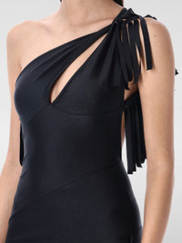 DESCRIPTION - Style: Contemporary - Details: With fringes - Neckline: Asymmetric - Shoulders: Regular - Waist: Stretch - Bottom: With asymmetric hemline - Model: Asymmetric - Length: Mini dresses - Occasion: Evening and party dresses - Sleeves: One-shoulder dresses - Materials: Crepe - Pattern: undefined DETAILS AND CARE Composition 80% polyamide 20% elastane SIZE AND FIT Sizes not available Size and fit Slim fit Designer code: COPR186F5001 BLK Giglio Code: G78848 Designer: Coperni Collection: Coperni Woman Category: Clothing Coperni