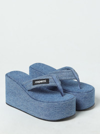 DESCRIPTION - Model: Wedge - Toe: Open - Sole: Rubber - Lining: Denim - Logo: With logo - Materials: Denim DETAILS AND CARE Composition 100 AF SIZE AND FIT Sizes Heel: 10,5 cm Designer code: COPSH09202 WASBLU Giglio Code: 407561 Designer: Coperni Collection: Coperni Woman Category: Shoes Coperni