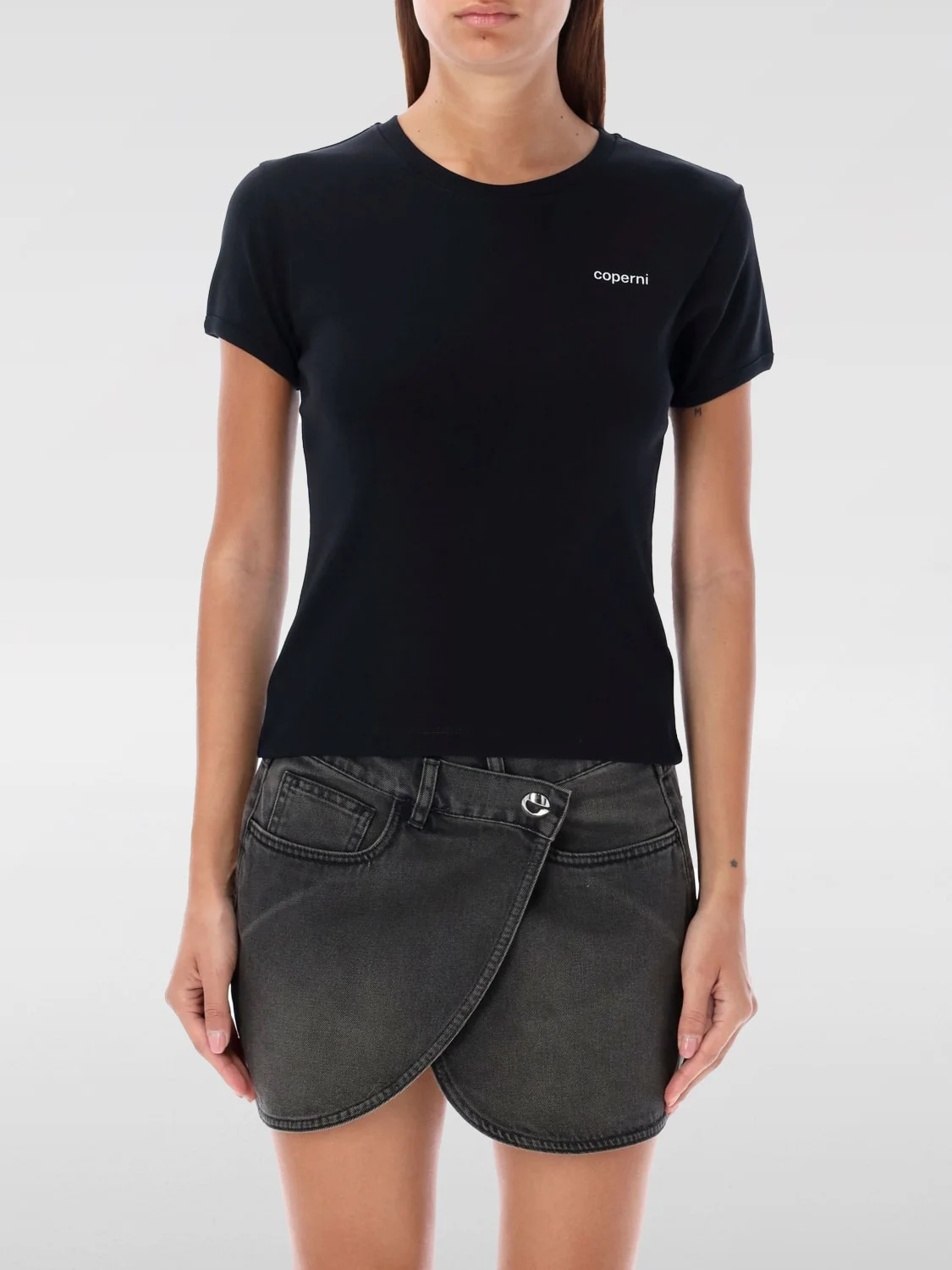 DESCRIPTION - Style: Basic - Neckline: Crewneck - Shoulders: Regular - Sleeves: Short - Bottom: With straight hemline - Materials: Cotton - Pattern: Plain-colored DETAILS AND CARE Composition not available SIZE AND FIT Sizes not available Size and fit Slim fit Designer code: COPJS07F5012 BLKWHT Giglio Code: F82858 Designer: Coperni Collection: Coperni Woman Category: Clothing Coperni