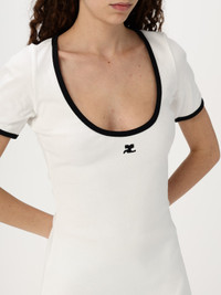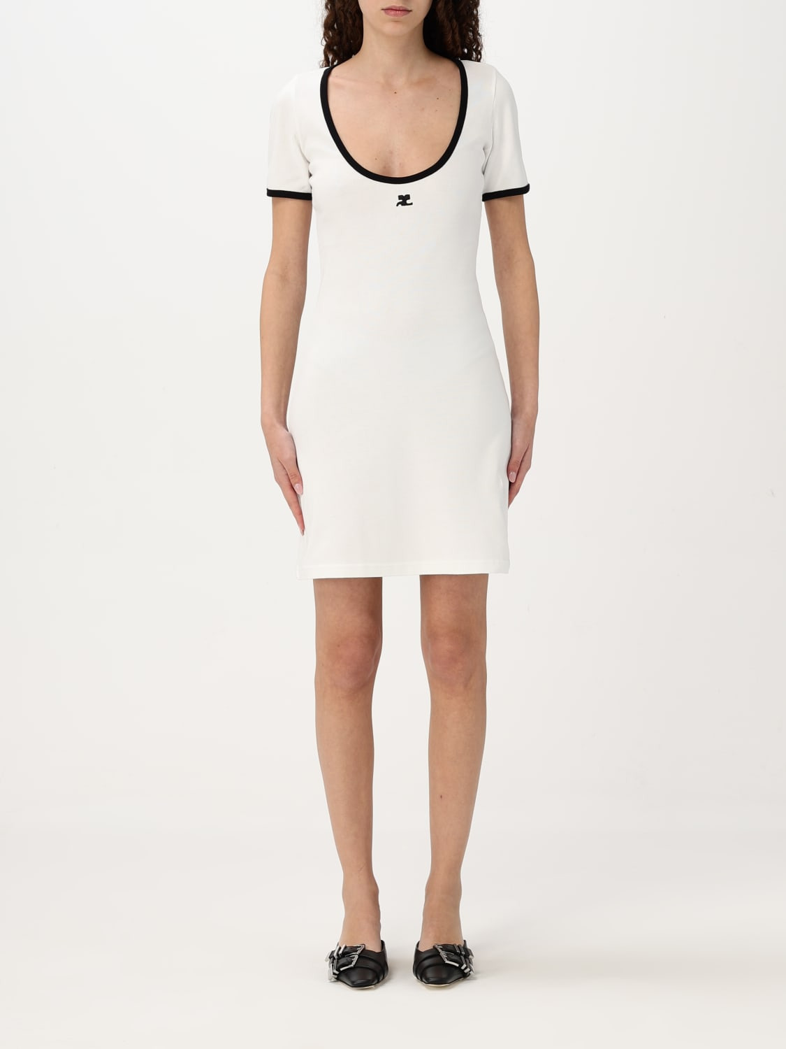 DESCRIPTION - Style: Sporty - Shoulders: Regular - Bottom: With side slit - Neckline: Round - Length: Mini dresses - Occasion: Morning dresses - Sleeves: undefined - Materials: Cotton - Pattern: Plain-colored DETAILS AND CARE Composition _100%CO SIZE AND FIT Sizes not available Size and fit Regular fit Designer code: 225JRO600JS0203 0098 Giglio Code: G77949 Designer: Courreges Collection: Courreges Woman Category: Clothing Courreges