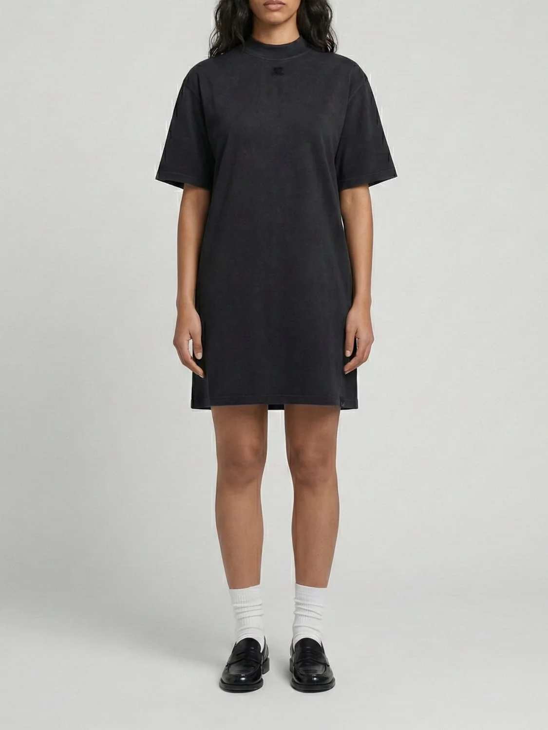 DESCRIPTION - Style: Sporty - Model: T-shirt - Neckline: Crewneck - Shoulders: Relaxed - Closure: Absent - Bottom: With straight hemline - Length: Mini dresses - Occasion: Morning dresses - Sleeves: Short-sleeve dresses - Materials: Cotton - Pattern: Plain-colored DETAILS AND CARE Composition SIZE AND FIT Sizes not available Size and fit Regular fit Designer code: 126JRO801JS0273 9999 Giglio Code: H88584 Designer: Courreges Collection: Courreges Woman Category: Clothing Courreges