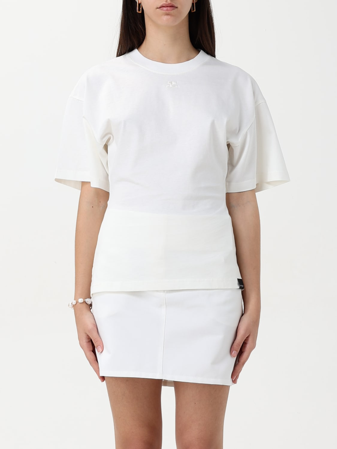 DESCRIPTION - Style: Contemporary - Model: Crewneck - Neckline: Crewneck - Shoulders: Relaxed - Sleeves: Short - Bottom: With straight hemline - Materials: Cotton - Pattern: Plain-colored DETAILS AND CARE Composition not available SIZE AND FIT Sizes not available Size and fit Slim fit Designer code: 125JTS168JS0107 0001 Giglio Code: G72353 Designer: Courreges Collection: Courreges Woman Category: Clothing Courreges