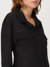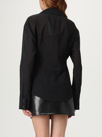 DESCRIPTION - Style: Safari - Neckline: V neckline - Shoulders: Regular - Bottom: With curved hemline - Neck: Lapel - Pockets: With flap - Closure: Concealed - Sleeves: Long sleeve shirts - Materials: Viscose - Pattern: Plain-colored DETAILS AND CARE Composition 70% viscose, 30% polyester SIZE AND FIT Sizes not available Size and fit Slim fit Designer code: PERMPU026FI0001 9999 Giglio Code: H15331 Designer: Courreges Collection: Courreges Woman Category: Clothing Courreges