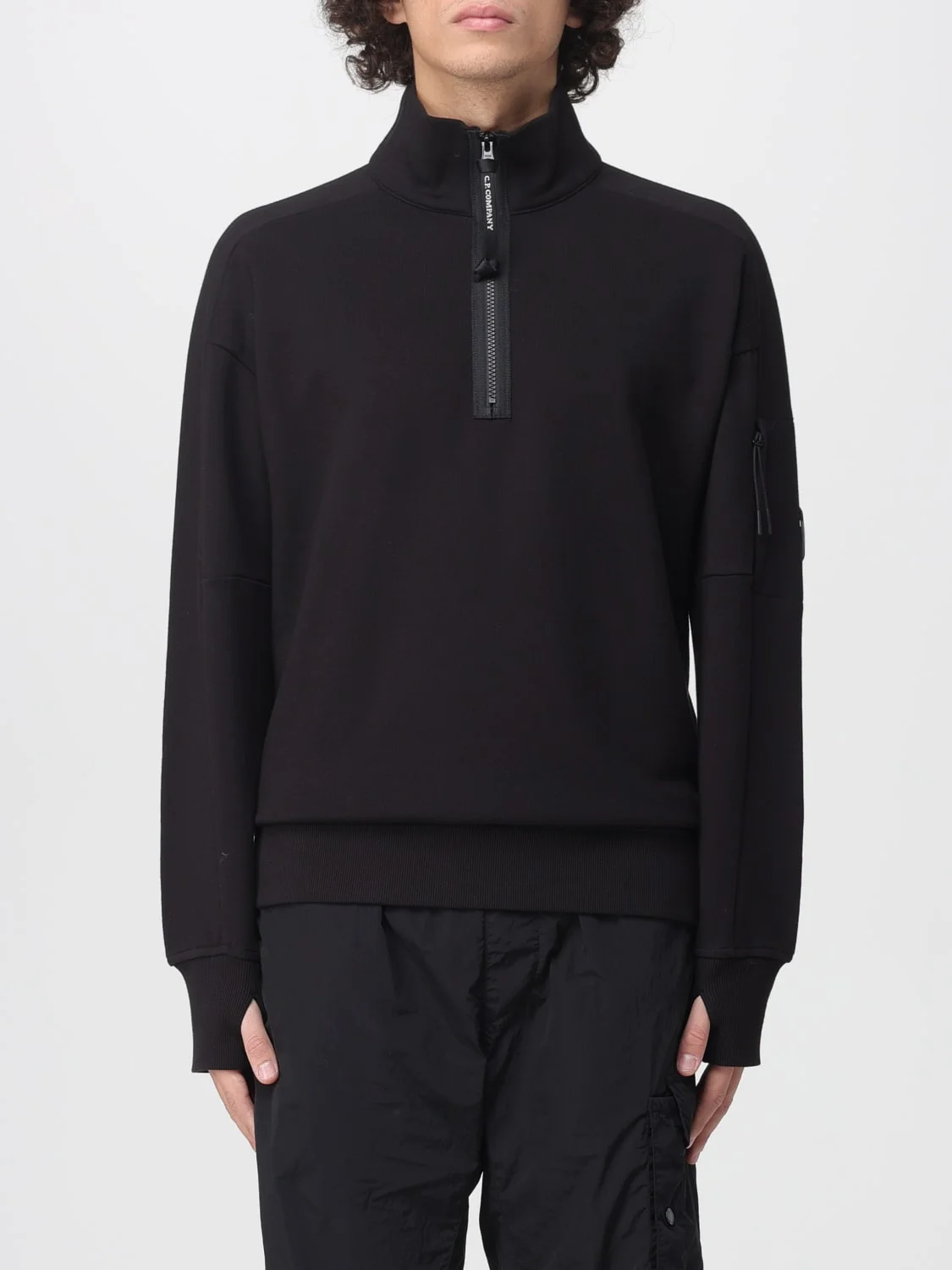 DESCRIPTION - Style: Sporty - Neck: High - Shoulders: Regular - Sleeves: Long - Closure: With interrupted zip - Bottom: With straight hemline - Logo: With logo - Materials: Cotton - Pattern: Plain-colored DETAILS AND CARE Composition not available SIZE AND FIT Sizes not available Size and fit Regular fit Designer code: 19CMSS153A005086W 999 Giglio Code: H57224 Designer: C.P. Company Collection: C.P. Company Men Category: Clothing C.P. Company