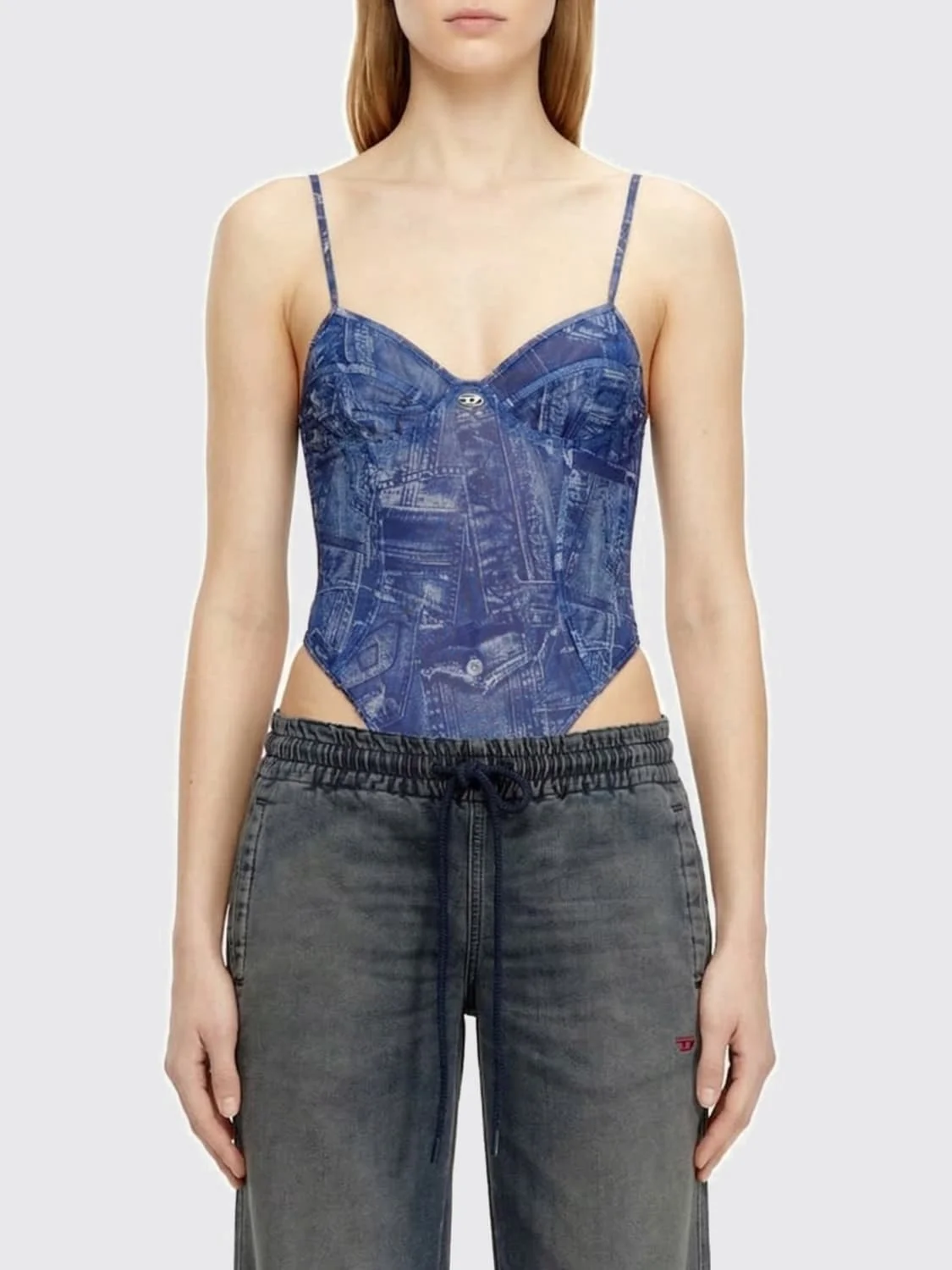 DESCRIPTION - Style: Urban-street - Neckline: Sweetheart - Shoulders: With adjustable shoulder pads - Closure: Back with interlocking hook - Logo: Diesel Oval D - Sleeves: Off-the-shoulder tops - Materials: Polyester - Pattern: Abstract, Logo DETAILS AND CARE Composition 88%Polyester 12%Elastane-Spandex SIZE AND FIT Sizes not available Size and fit Slim fit Designer code: A212040CJBM 8IX Giglio Code: H93296 Designer: Diesel Collection: Clothing Diesel Category: Clothing > Top